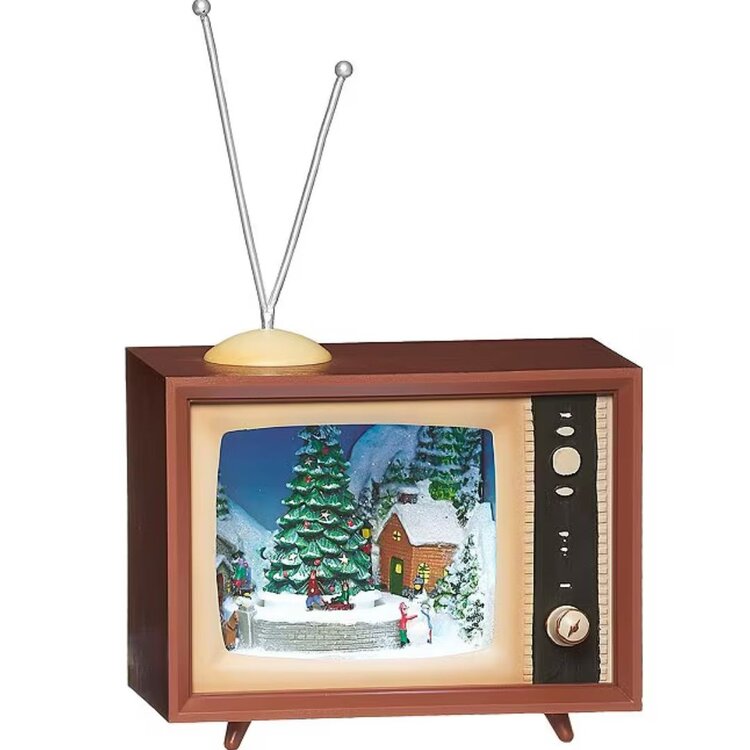 Musical LED TV with Rotating Christmas Scene—this nostalgic TV features a charming winter scene with children sledding. Enjoy classic holiday tunes like *Jingle Bells*, *Silent Night*, *Deck the Halls*, and more, bringing festive cheer to your home all season long.
