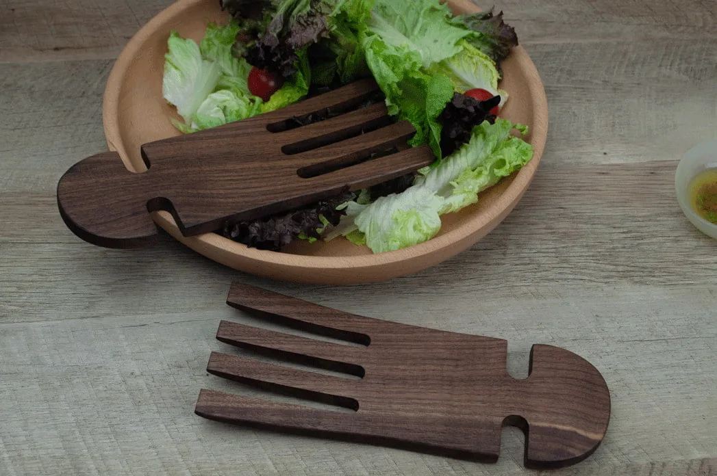 Crafted from a single piece of premium American walnut, these serving hands offer both beauty and practicality—designed to toss and serve salads with ease.