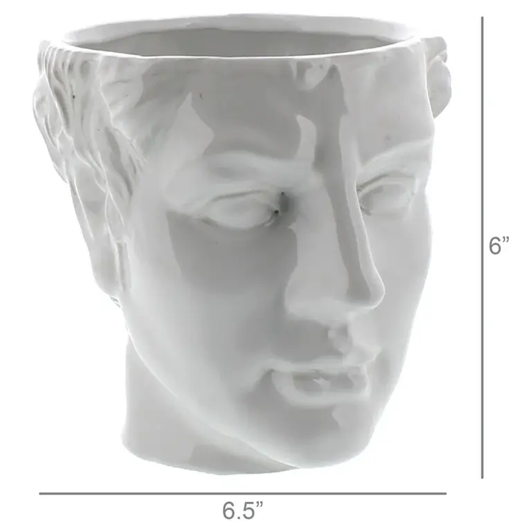 Watertight and versatile, the Apollo Ceramic Head makes a stylish home decor and gift for mantels, shelves, tabletops, or entry tables. Its unique design ensures it stands out as a decorative accent while remaining functional for plants or flowers.