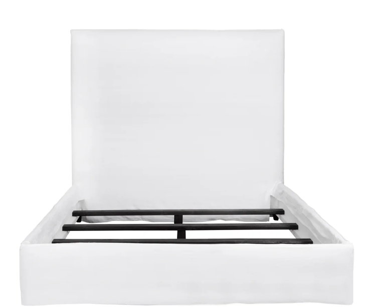 The April Tall Bed still has the same clean and uncluttered look at the original version, featuring a sleek and streamlined frame that exudes simplicity, only this headboard is much taller, by 11" to be exact. The slipcover option offers a practical and convenient solution, as it can be effortlessly removed for cleaning or replaced with a different fabric to suit your evolving style preferences.