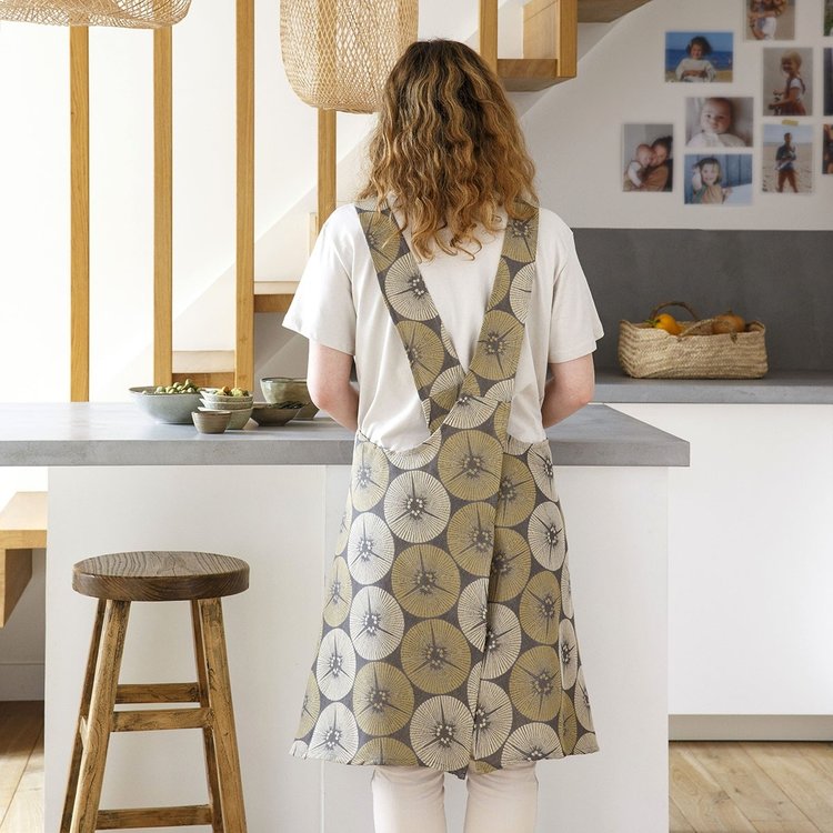 Journey to Japan, with this traditional graphic pattern of Japanese umbrellas. Woven in a "triple-pocket" weave, the soft and light fabric, reminds us of Japanese cotton gauze. The intense Torii red will bring a luminous touch to your kitchen. The apron, made of cotton and without any ties, is practical with its central pocket and can be quickly put on!