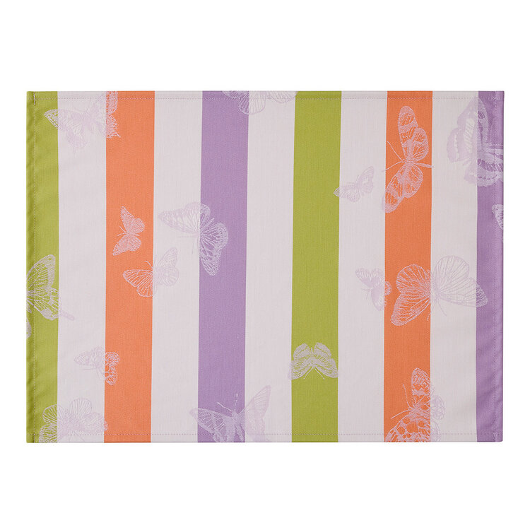 Inspired by the magic of nature, these lilac-striped placemats transport you into an enchanting fairytale, where delicate butterflies dance through a whimsical garden scene. Effortlessly elegant, their soft hues and playful stripes add a touch of French charm to your table.