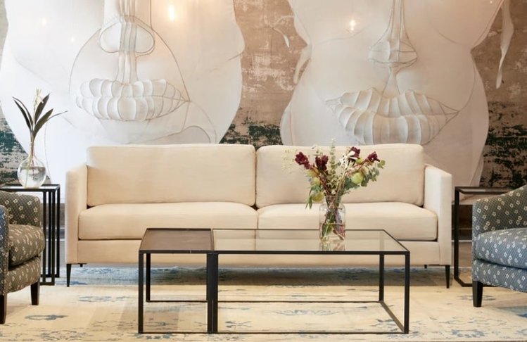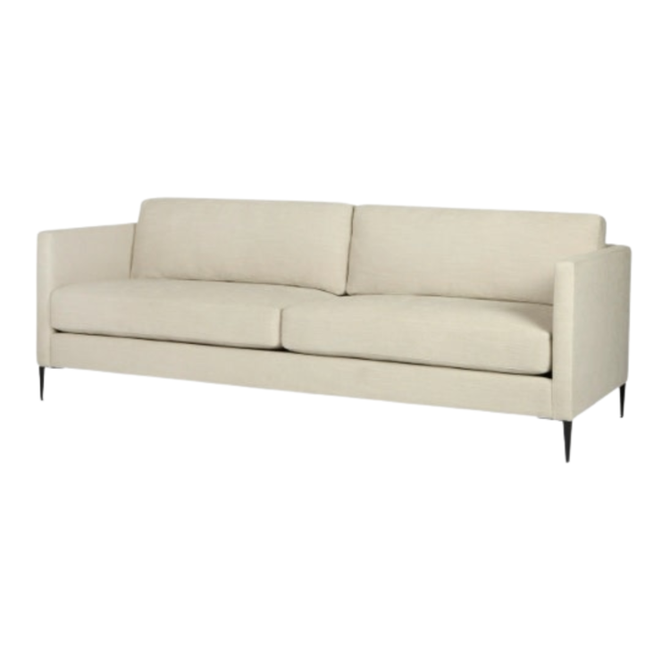 The Benedict is a modern design with clean lines and sleek metal legs in black rust. It has a fresh and functional aesthetic with no-sag support. As a small scale sofa, its ideal for apartment living and suitable for any occasion.