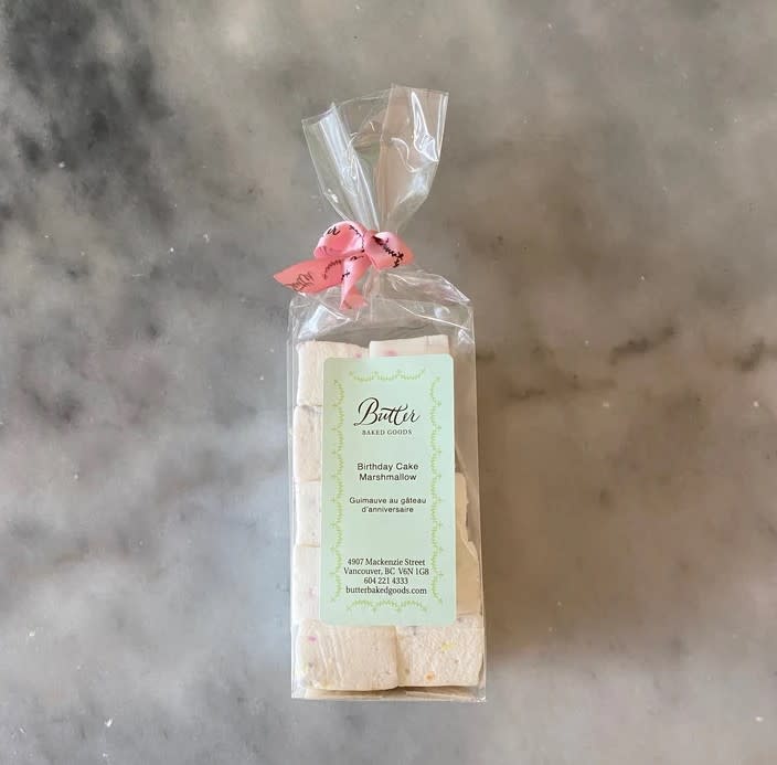 • Bag of 10 tasty, hand cut birthday cake marshmallows, made in British Columbia.