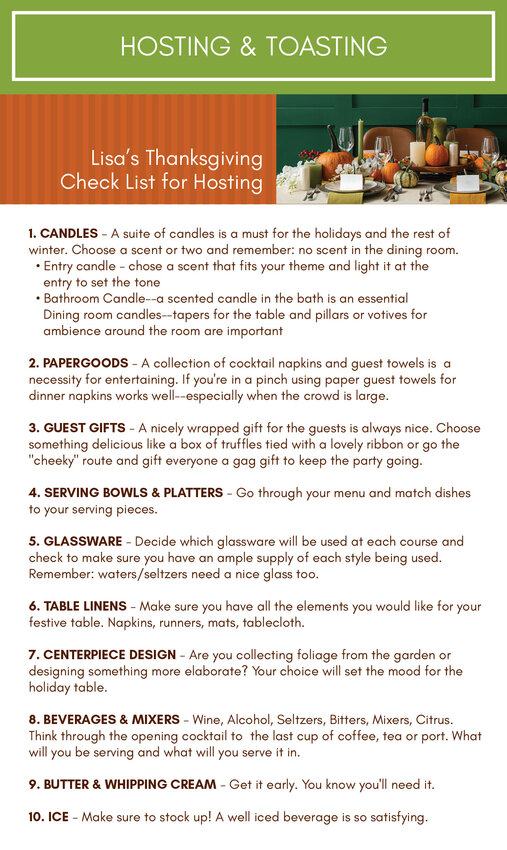Get ready for a perfect Thanksgiving with Lisa's hosting checklist. From candles to glassware, find tips for an elegant, stress-free holiday celebration at CAPERS Home.