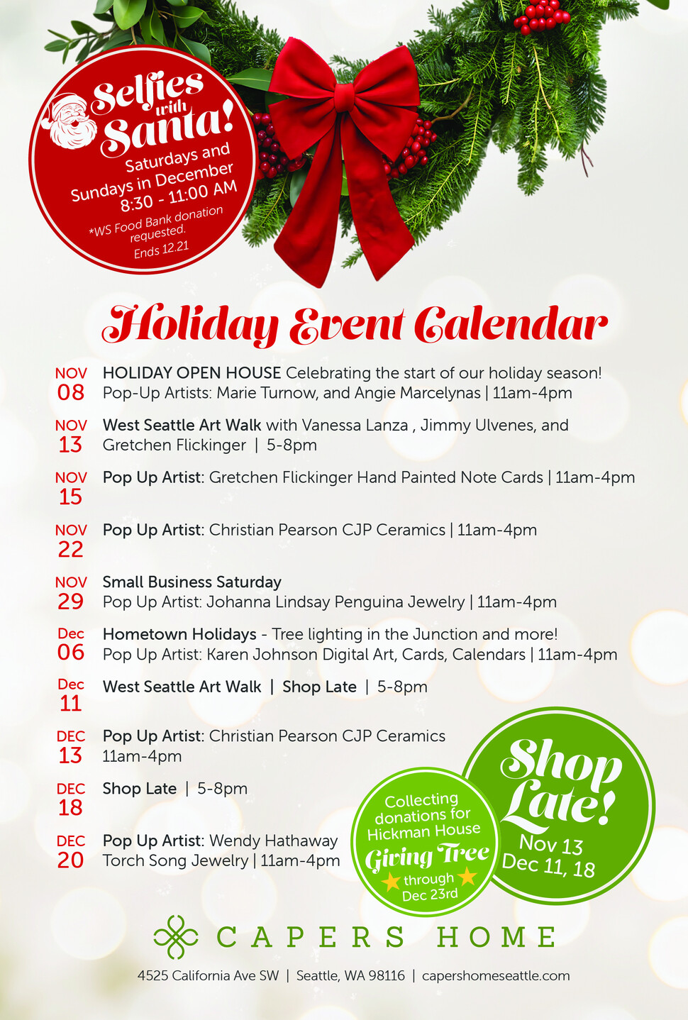 Join Us! Be part of the joy, creativity, and community spirit that makes this Holiday Season at CAPERS Home truly unforgettable.