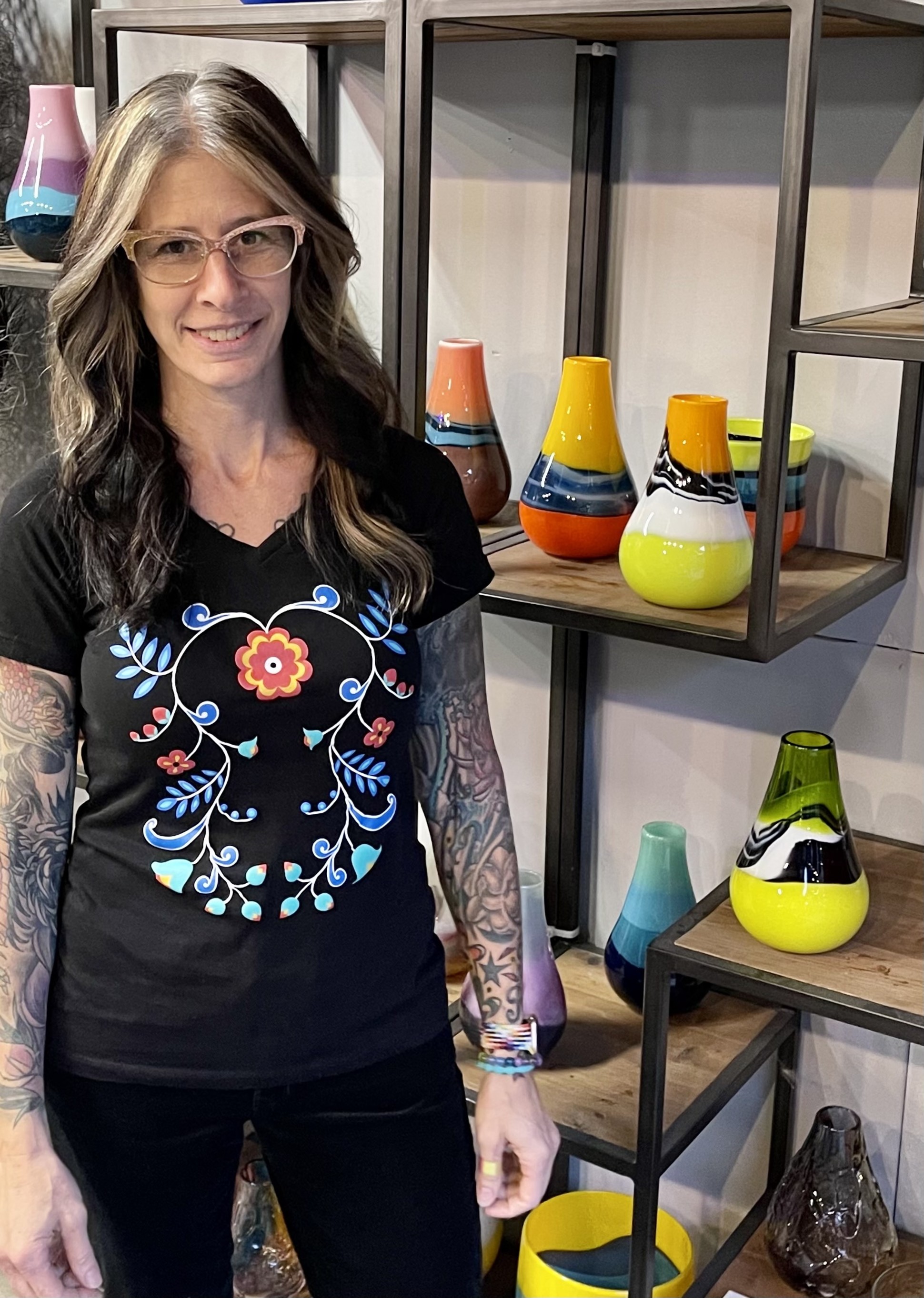 Melissa runs Misoda Glass Studio with her husband, Andy, in West Seattle. During her days she teaches glassblowing at Sammamish High School in Bellevue, Wa. She absolutely loves that she is able to pass this amazing art form onto younger generations! “It is so important to give kids skill based art options, especially for those who do not feel like they are ‘good at art’. It helps build self confidence, teamworking and communication skills, and critical problem solving!”