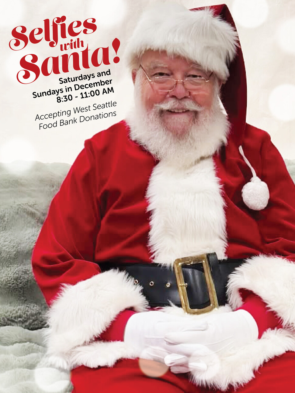 A small food donation for the West Seattle Food Bank is appreciated with each Santa visit. It’s a meaningful way to share the spirit of generosity during the Holiday Season, and your contribution helps support local families.