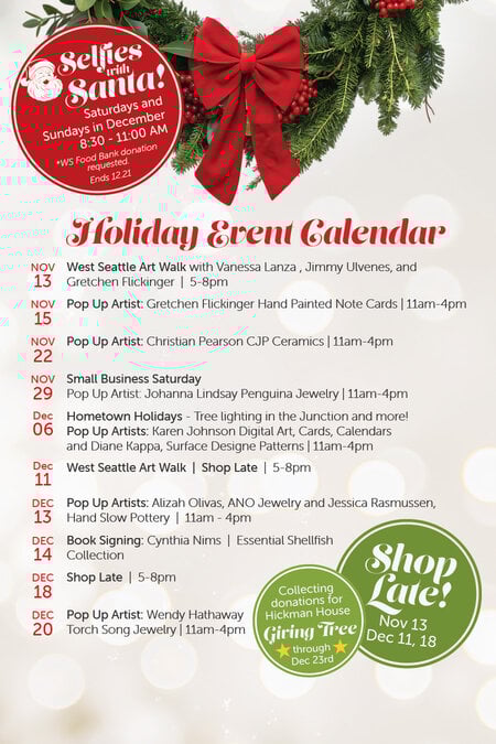 A small food donation for the West Seattle Food Bank is appreciated with each Santa visit. It’s a meaningful way to share the spirit of generosity during the Holiday Season, and your contribution helps support local families.