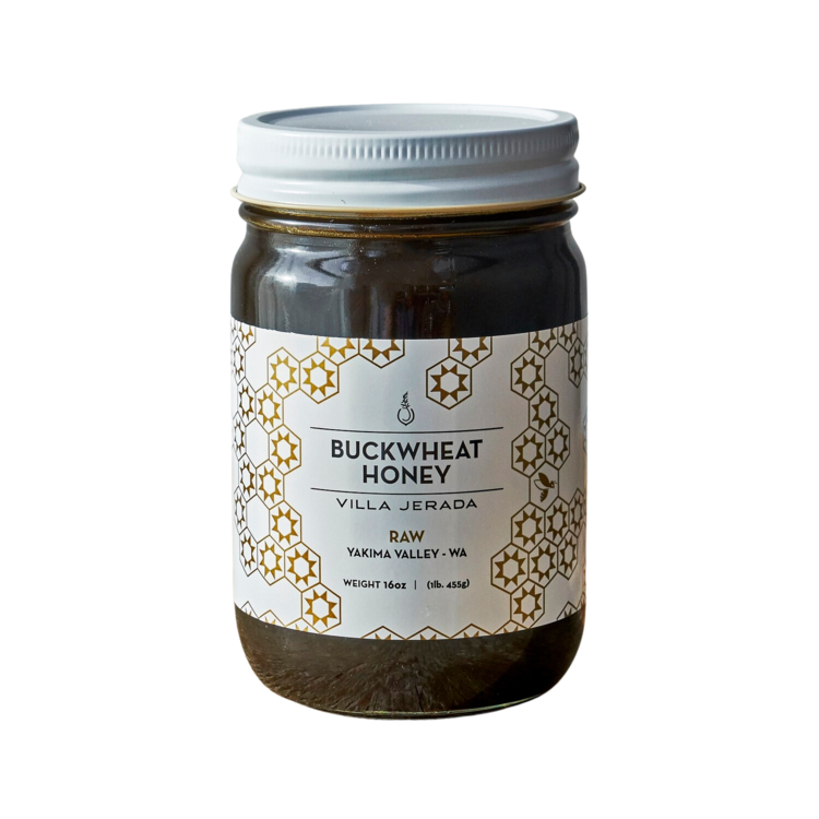 Villa Jerada buckwheat honey is unfiltered, raw, full of complex flavors such as molasses and caramel. It pairs well with raw milk cheeses, fruits, teas and in a simple baguette slice with olive oil and a generous drizzle on top.