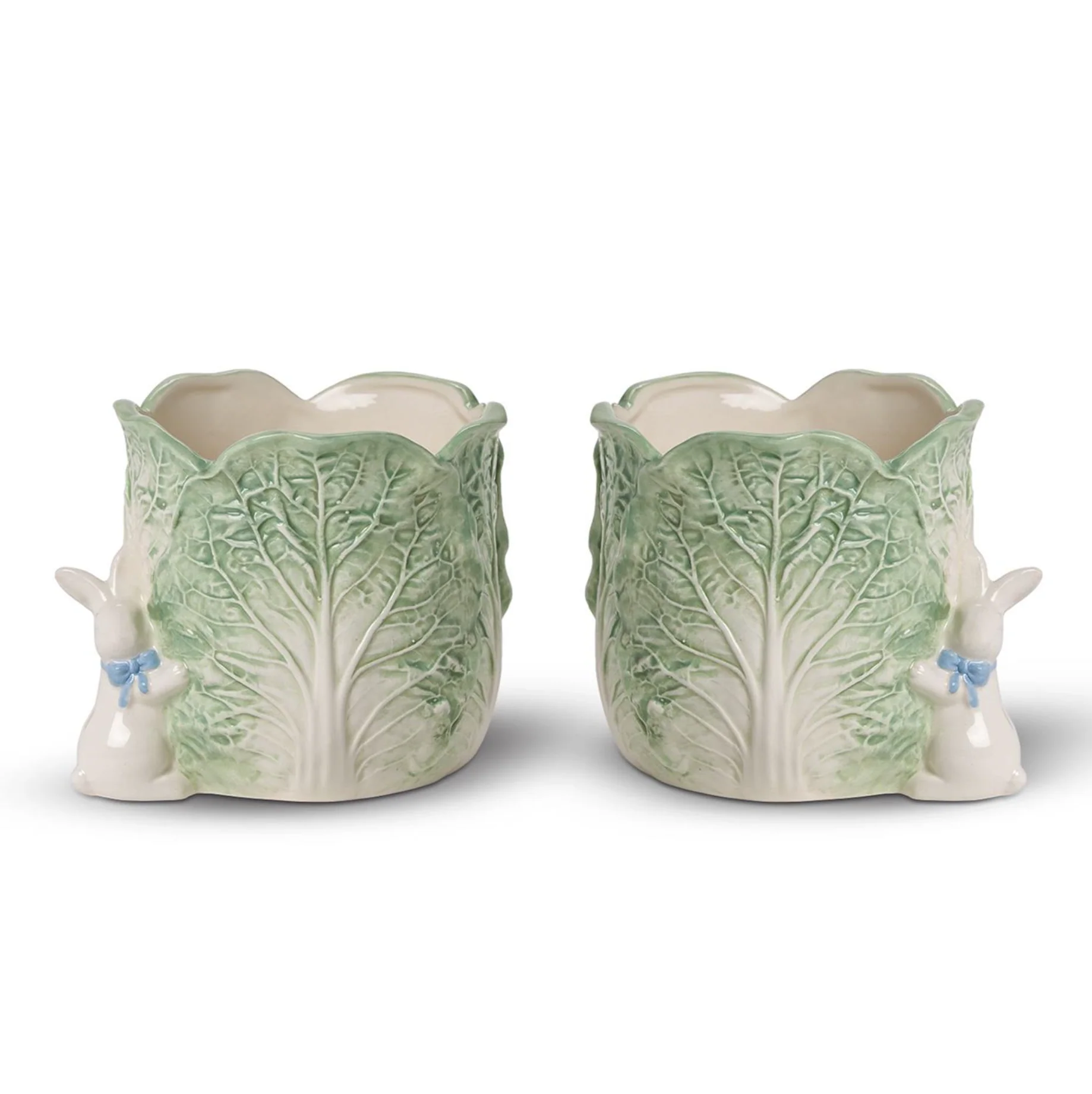 Crafted from ceramic, this adorable bunny figurine holds a cabbage-shaped planter featuring realistic textured detailing that brings seasonal charm to any space.