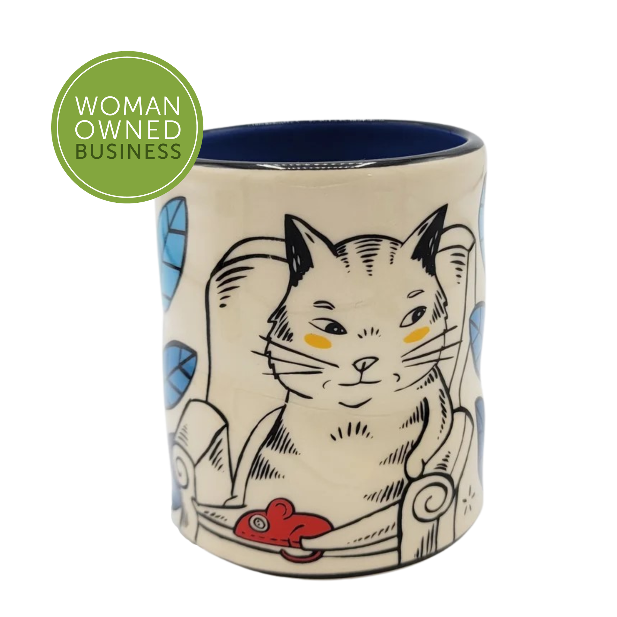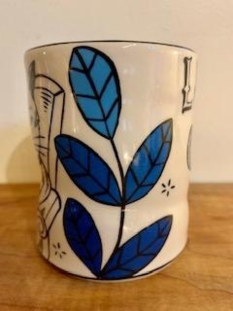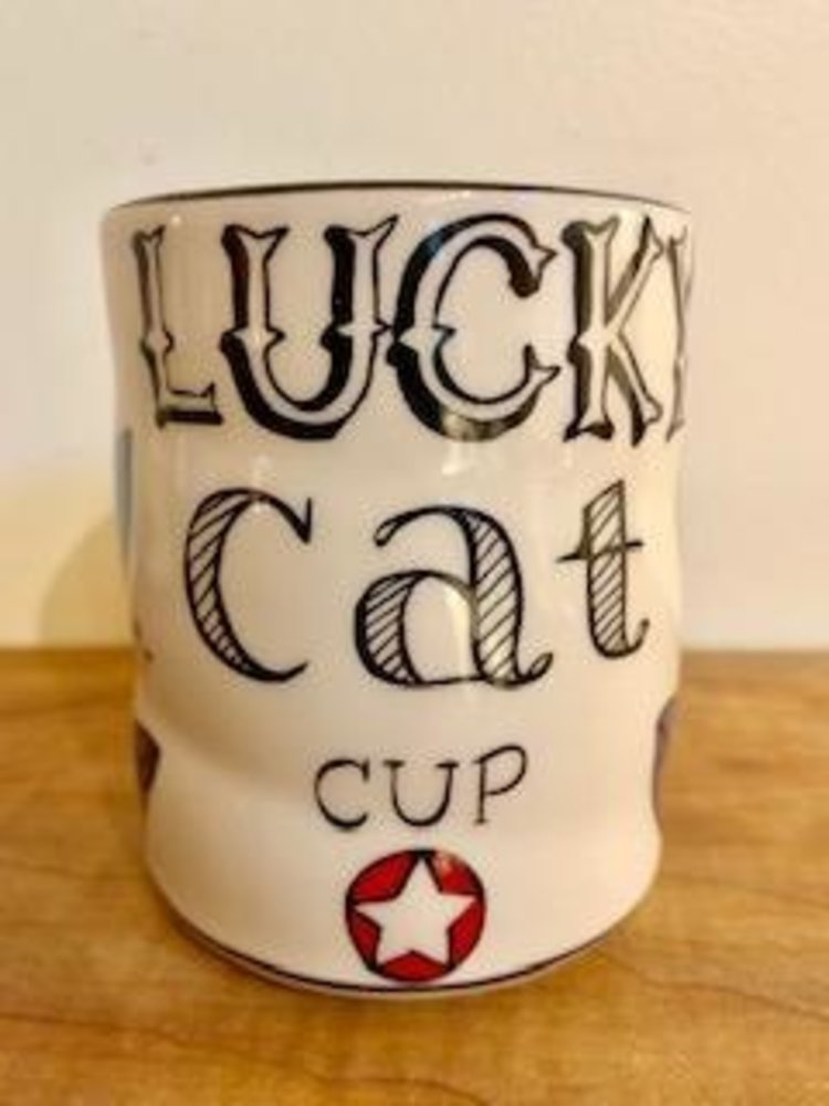 Like prints of a painting, the cups that make up the Lucky Cup Line are faithful reproductions of the artist's originals. Designed in Washington State, made in Thailand. The wares are food, microwave, and dishwasher safe, as well as family and cafe proven strong.
