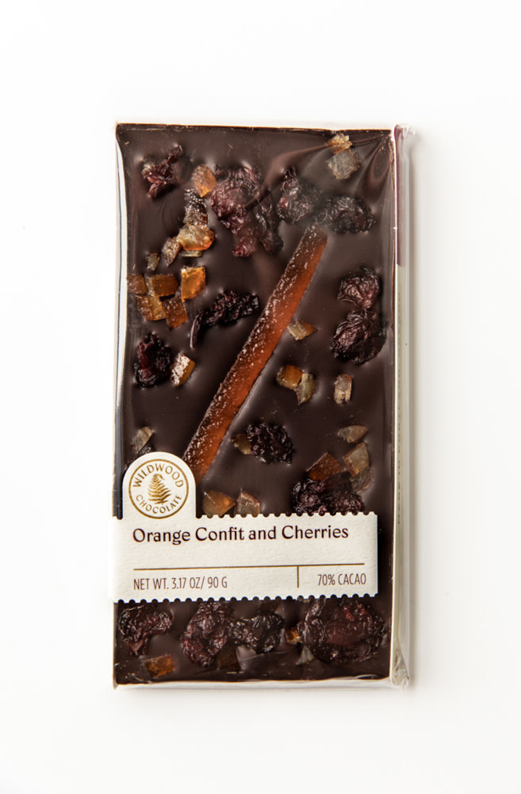 Refined sweet floral orange confit pairs in delicate balance with tart dried cherries making this duo a supreme match over rich 70% dark chocolate. Enjoy with your favorite fruity tea or wine.
