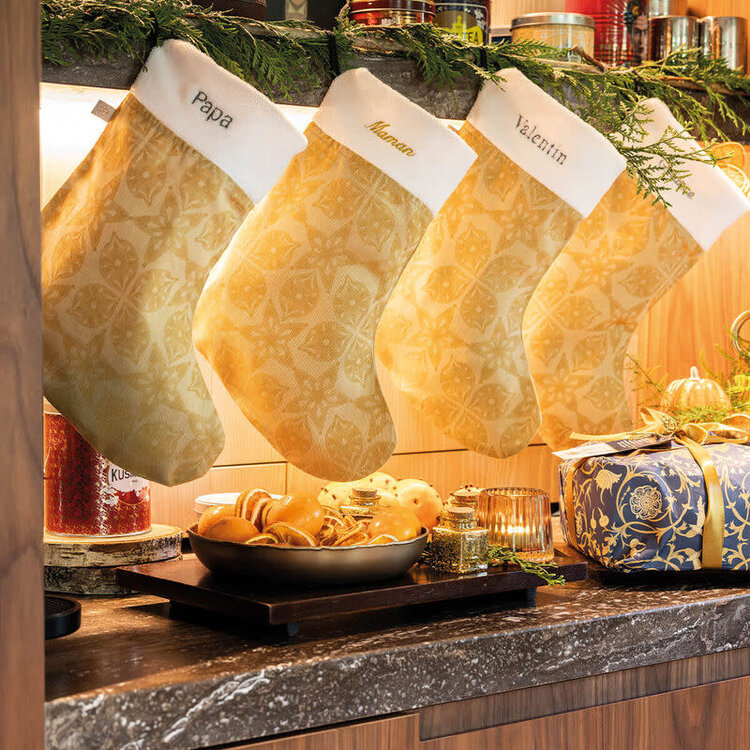 • Dive into the magic of a folkloric Christmas with the Christmas Stocking Feerie, part of CAPERS Home’s curated collection of French table linens and festive décor.