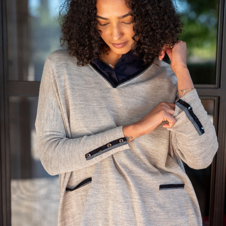 Review Catalina V-Neck Sweater - Driftwood Ringer Petite