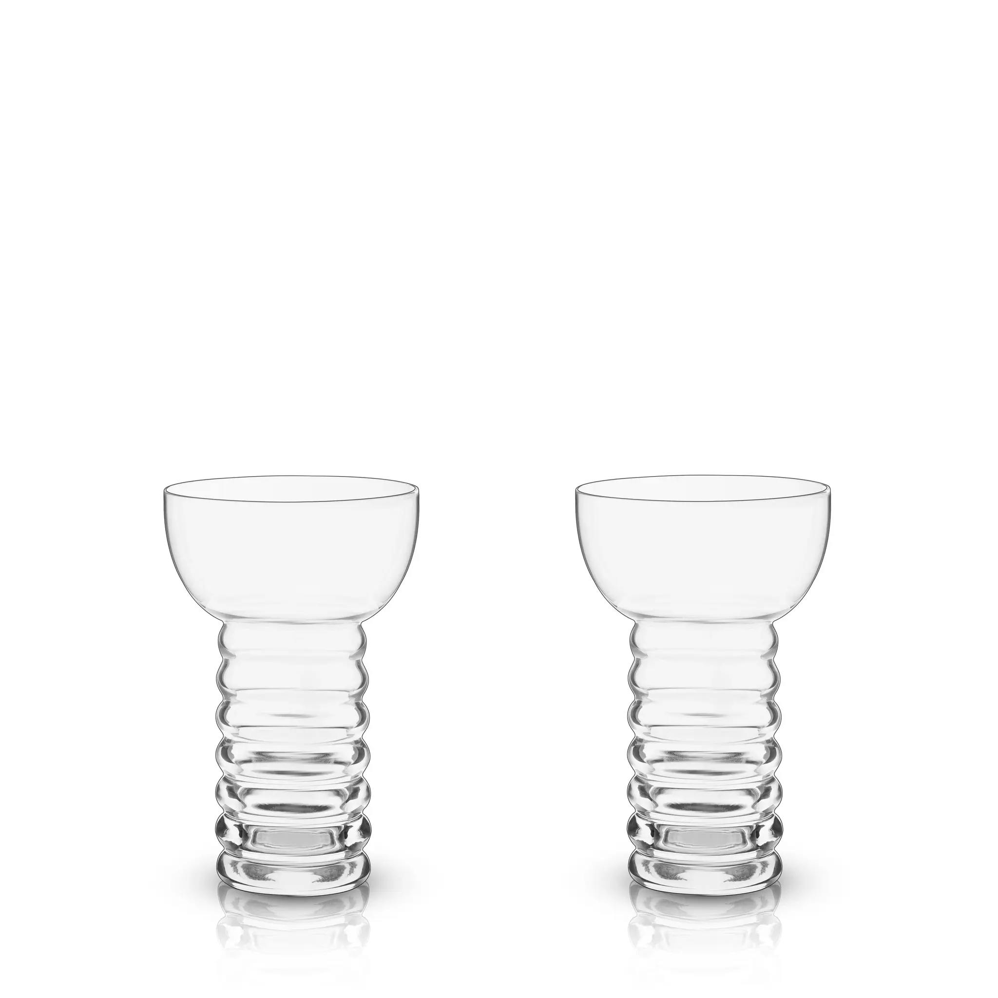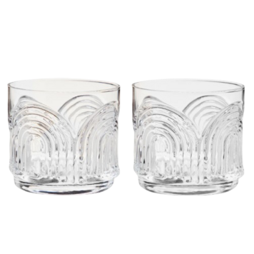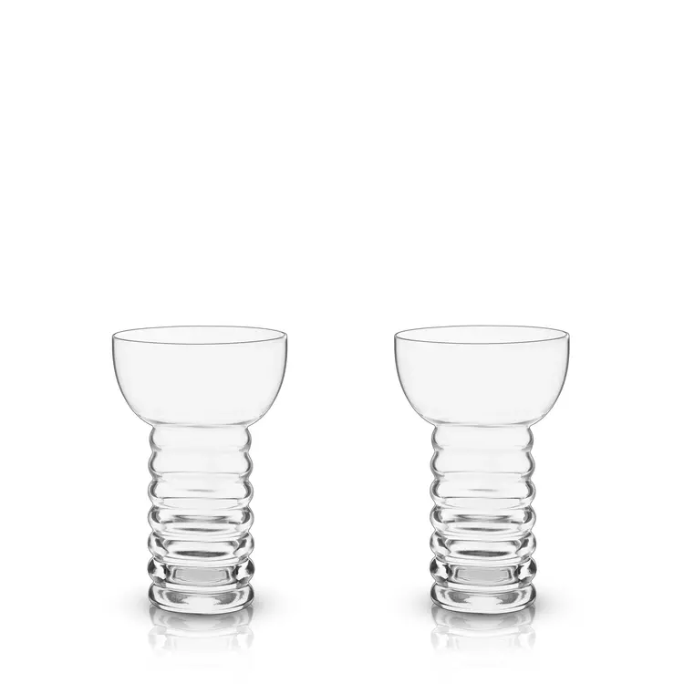 Inspired by the iconic 1930s tiki silhouette, these crystal-clear cocktail glasses are perfect for displaying on a bar cart, in a liquor cabinet, or as part of a curated home collection.