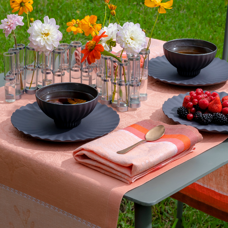 Designed with soft floral motifs and a palette of sparkling, authentic colors, these napkins bring a dose of elegance and softness to your summer tables.