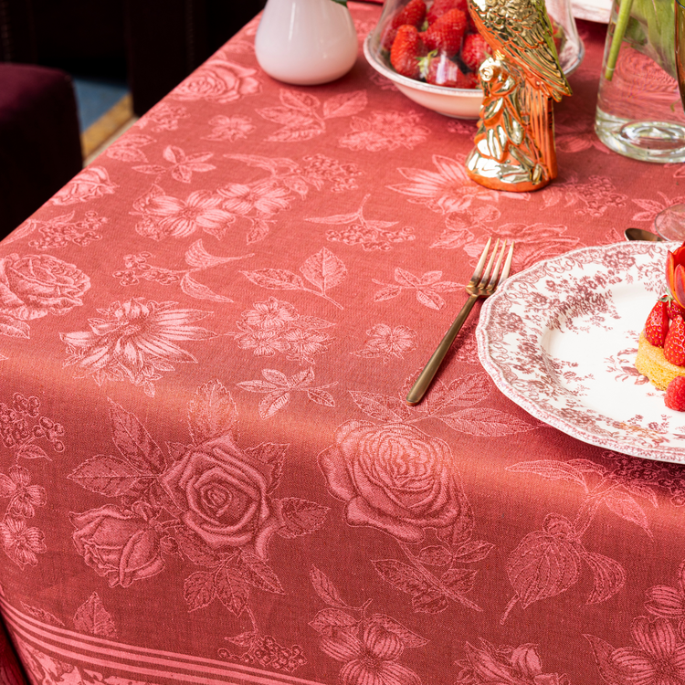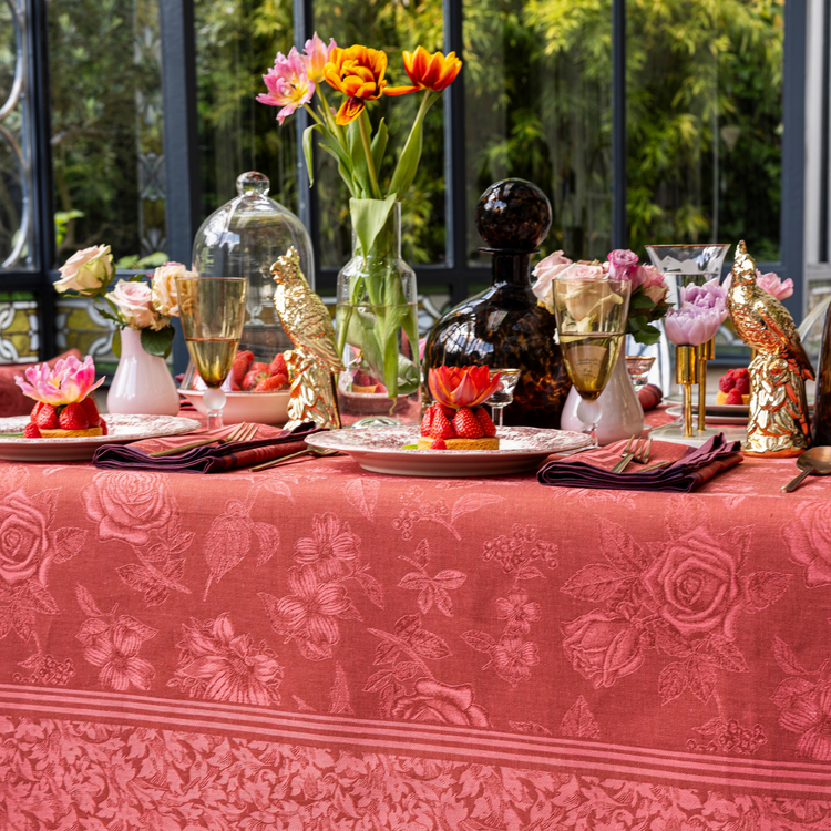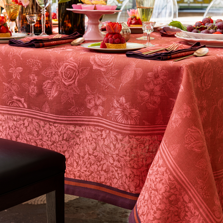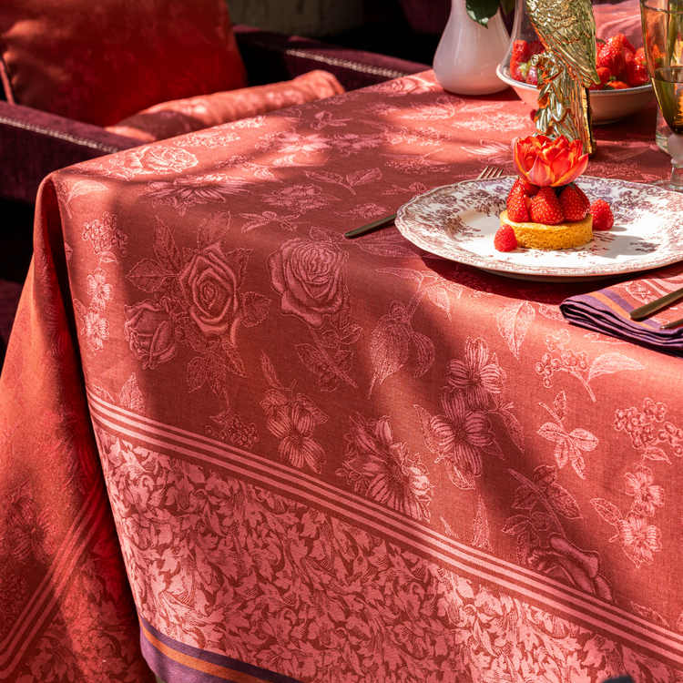 Crafted by Le Jacquard Français, this design captures the charm and warmth of European dining with a touch of romantic sophistication.