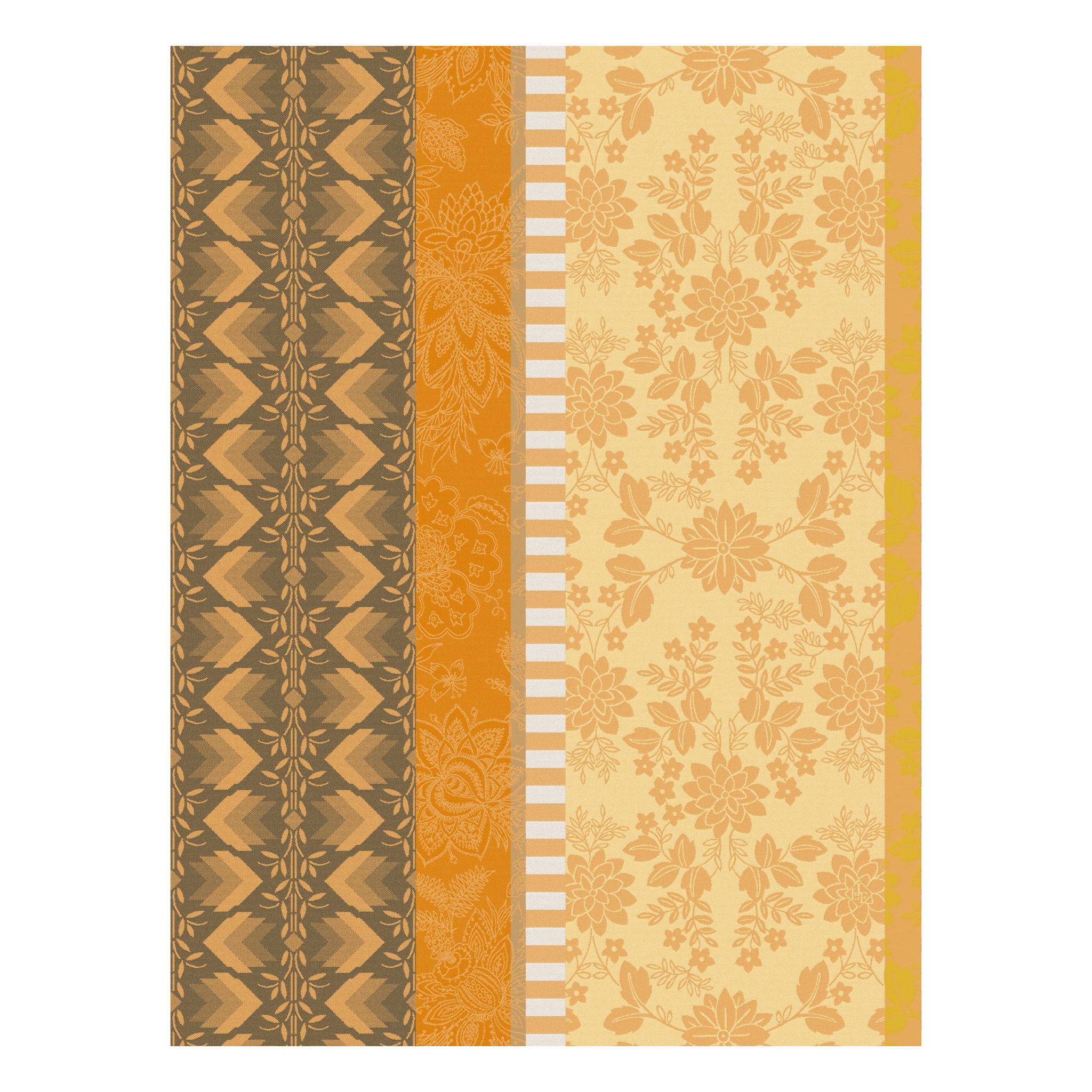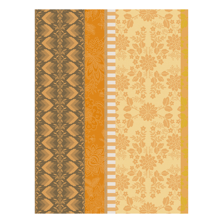 100% Cotton. Each towel is made from long-staple combed cotton, offering superior softness, smoothness, and durability. The fine yarns deliver a luminous finish and exceptional detail to every French table linen design by Le Jacquard Français.