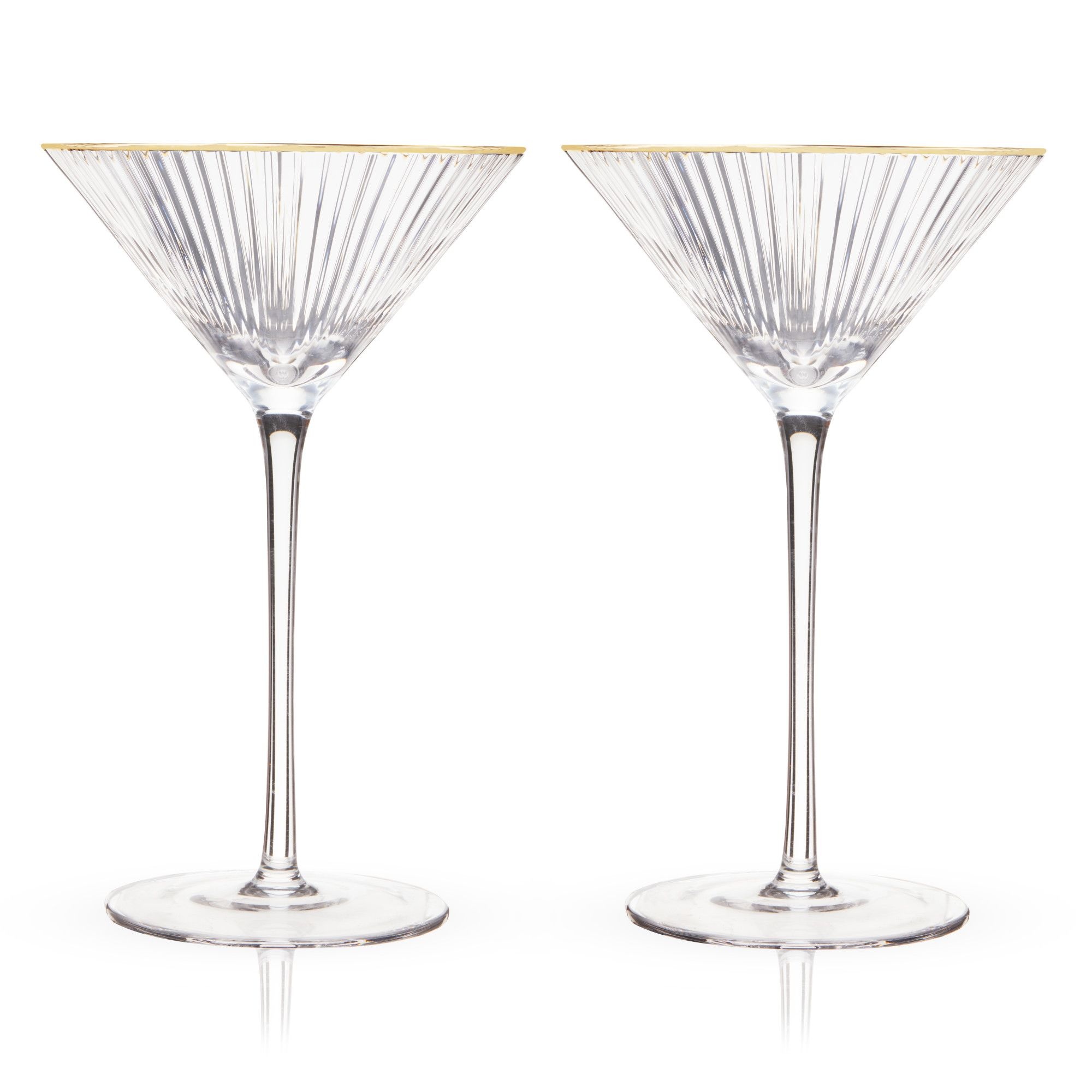 Each set of two glasses features a classic stemmed design, Art Deco ripple pattern, and luxurious gold-rimmed crystal. Perfect not only for serving your favorite cocktails but also as a sophisticated accent for your home decor, these glasses bring elegance and style to your bar, dining table, or display cabinet. With a capacity of 7.8 ounces each, they combine functionality with refined design—making them a beautiful addition to your entertaining collection or a thoughtful home decor gift.