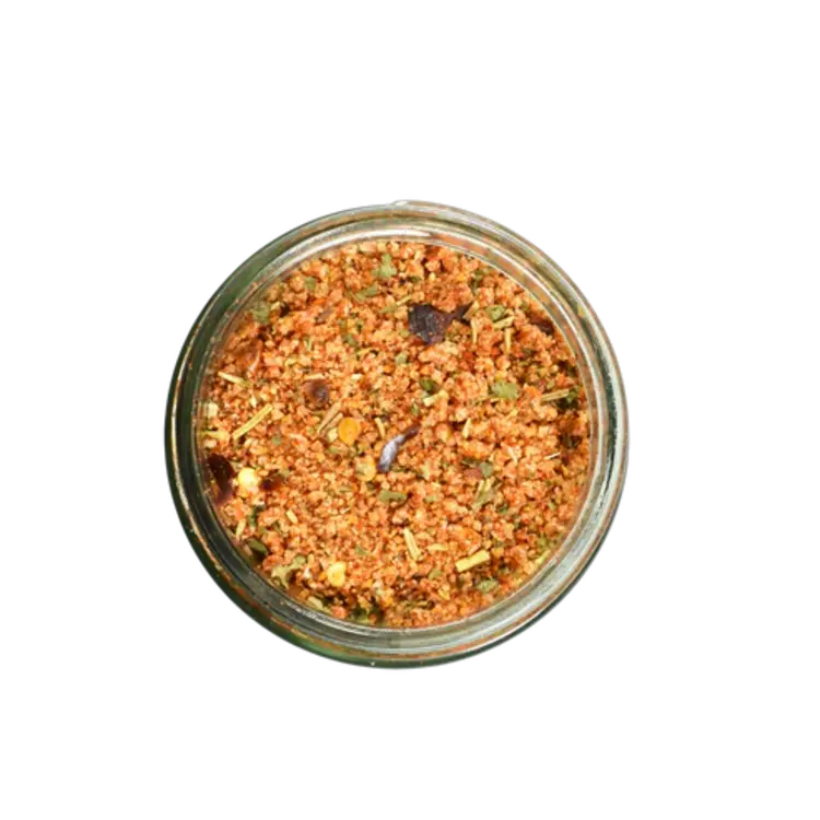 Ingredients: San Juan Island Sea Salt, Organic Garlic, Organic Onion, Organic Paprika, Organic Mustard, Organic Sugar, Organic Rosemary, Organic Parsley, Organic White Pepper, Organic Chili Flakes, Organic Black Pepper, Citric Acid, Organic Lemon Peel