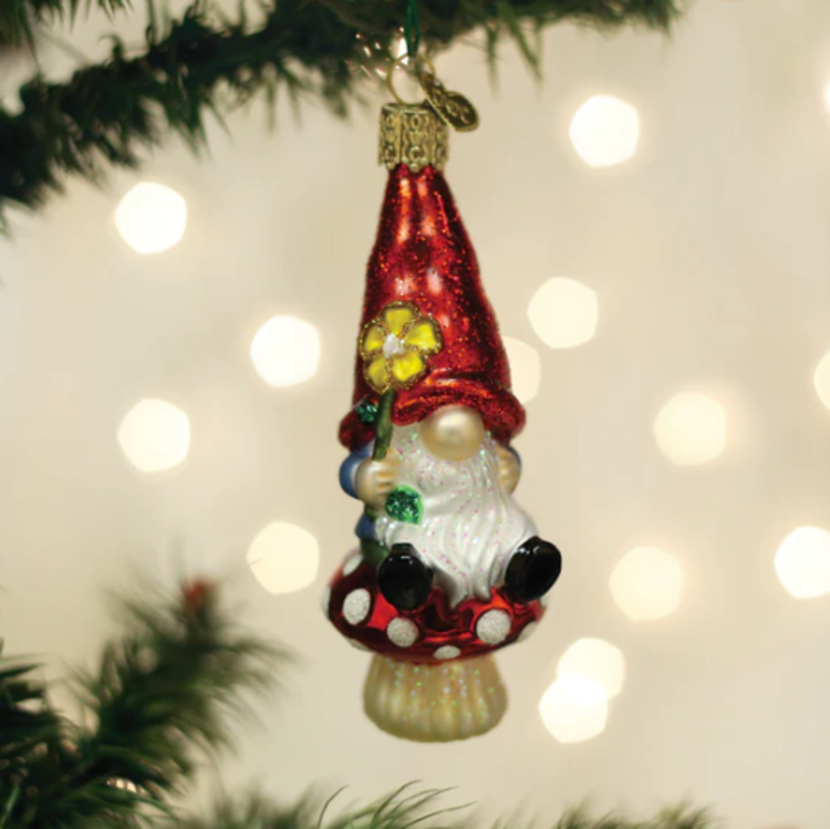 He’s found a safe place to rest for the holiday season, the Christmas tree! Many garden gnomes have stolen and taken on trips as a prank to their owner.