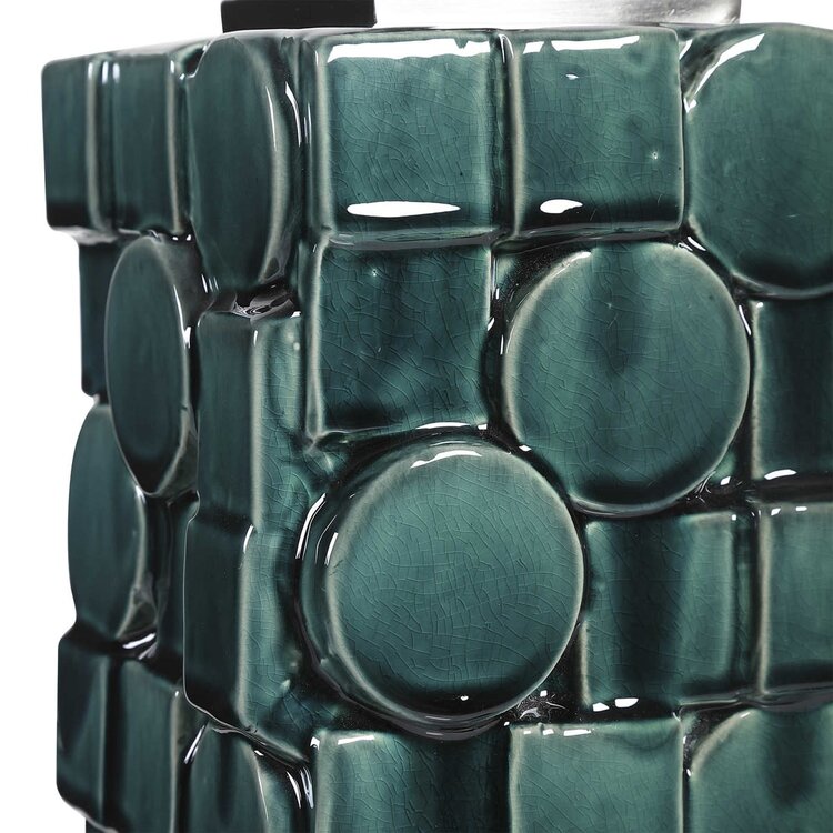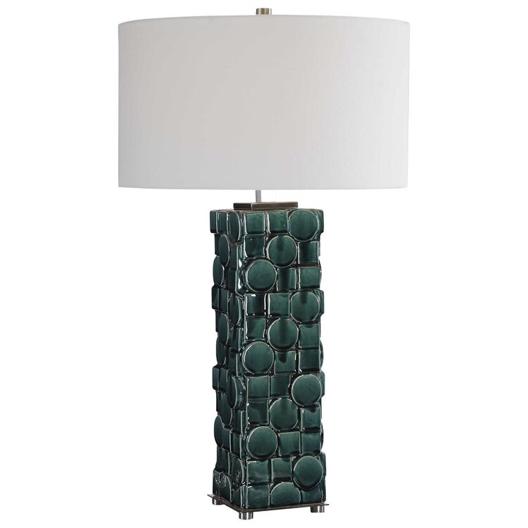 The round drum shade is a white linen fabric with light slubbing. *This item isn't covered by our shipping special, it is available for free pick-up in our West Seattle store. Please contact us directly if you wish to discuss possible shipping options or local delivery.