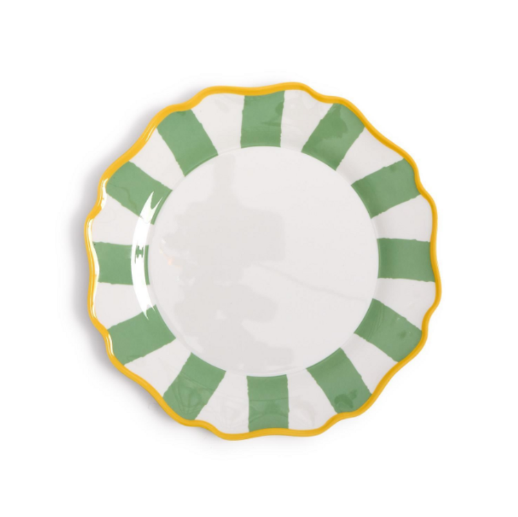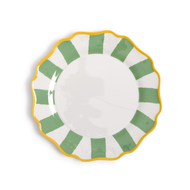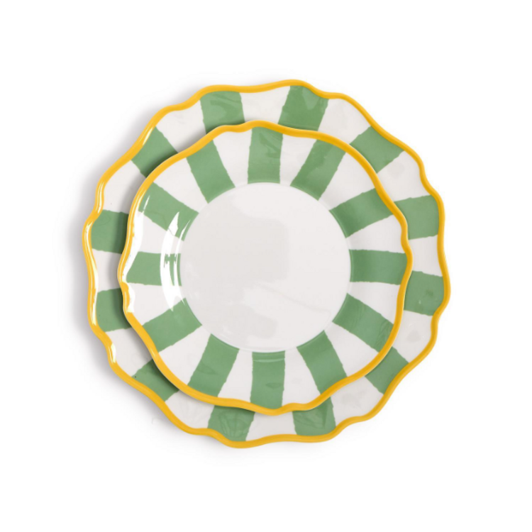 Crafted from 100% melamine, these plates are lightweight, shatter-resistant, and dishwasher safe, making cleanup after long gaming sessions effortless. Their fresh sage green striped pattern adds a vibrant touch to your table, elevating both casual and festive settings.