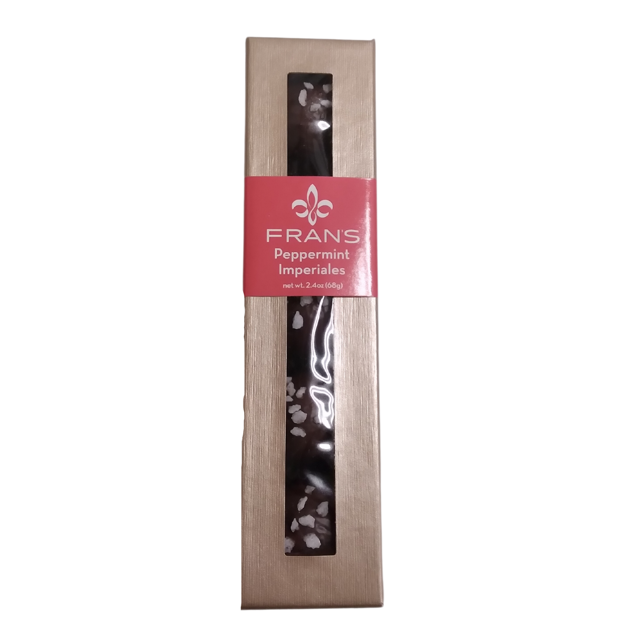 A seasonal specialty - a rich and velvety dark chocolate center infused with locally grown peppermint is coated in dark chocolate and finished with demerara sugar.