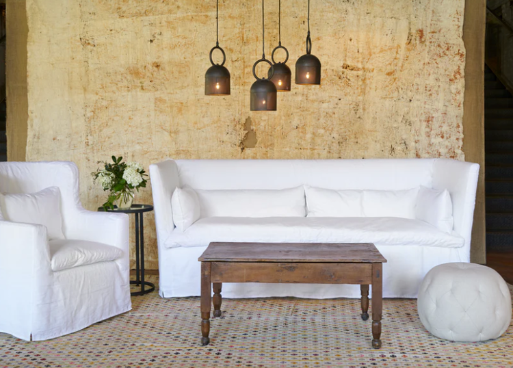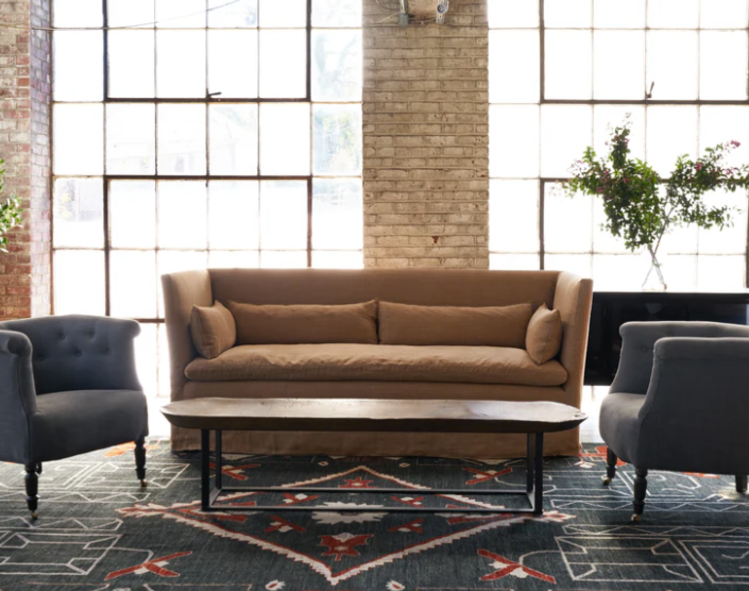 The Hunter Sofa is grand and sheltering, like a booth in your own living room. Cozy up on its comfortable plush bench seat and lay back on one or two of the lumber pillows.