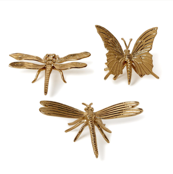 This set features a butterfly, small dragonfly, and large dragonfly, each meticulously crafted from lightweight yet durable aluminum.