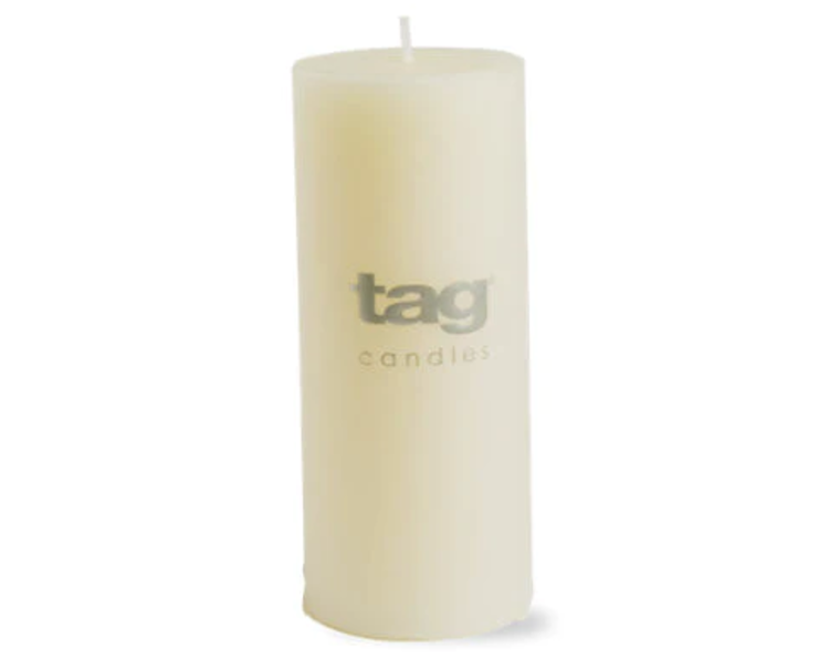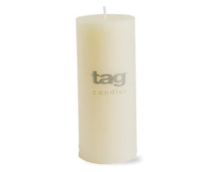 This chapel candle has a flat top and is smokeless, dripless, long lasting and unscented. The tag logo is printed on a wrap which is removed prior to lighting.
