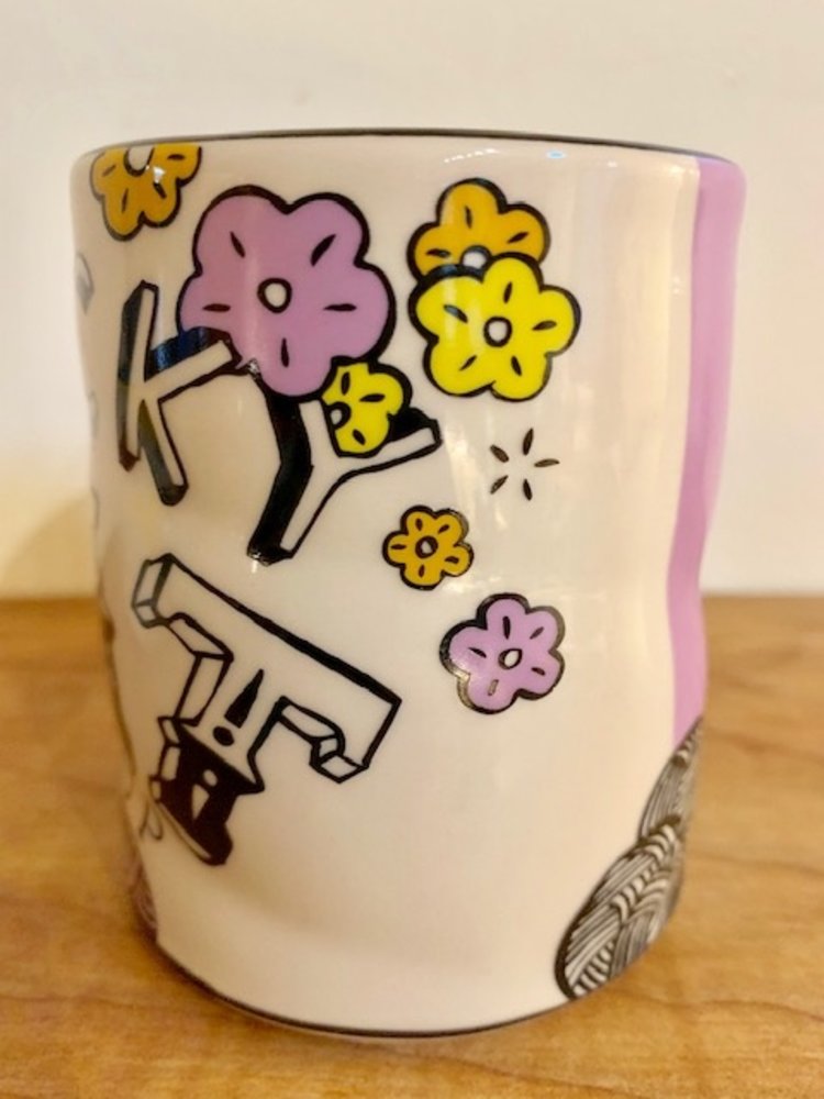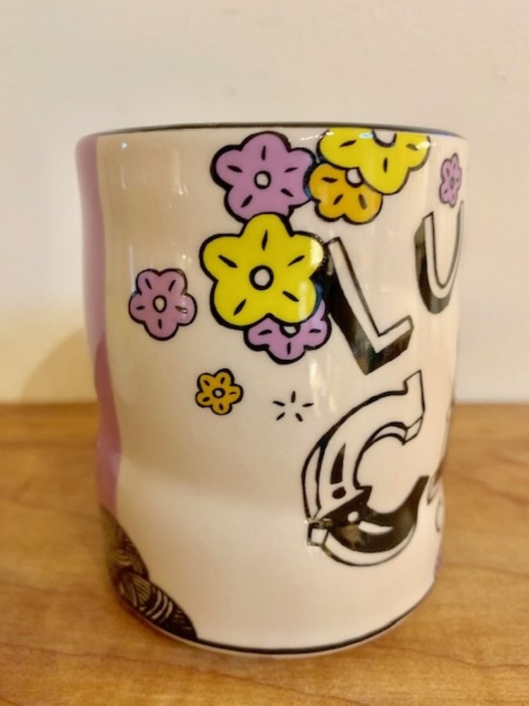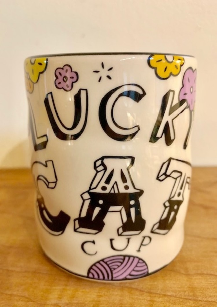 Like prints of a painting, the cups that make up the Lucky Cup Line are faithful reproductions of the artist's originals. Designed in Washington State, made in Thailand. The wares are food, microwave, and dishwasher safe, as well as family and cafe proven strong.