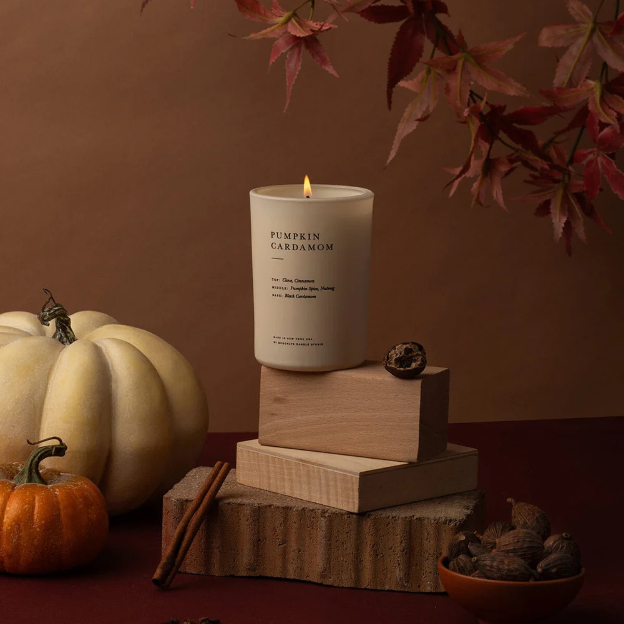 At the top, clove and cinnamon create a classic holiday aroma, while the heart reveals pumpkin spice and nutmeg, evoking the nostalgic scents of freshly baked treats. The scent deepens with black cardamom, adding a bold, smoky richness that lingers beautifully in your home.