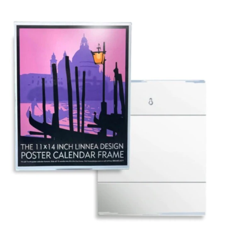 Slimline 11" x 14" frame is custom designed to hold all 12 months of the poster calendar.