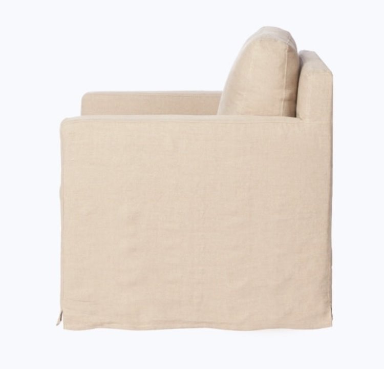 A classic style with a scale that suits your space. The Louis has an engaging profile and a sheltering, narrow seat. This design combines modern and coastal aesthetics with clean lines, a straight skirt, and a subtle 2" slit.