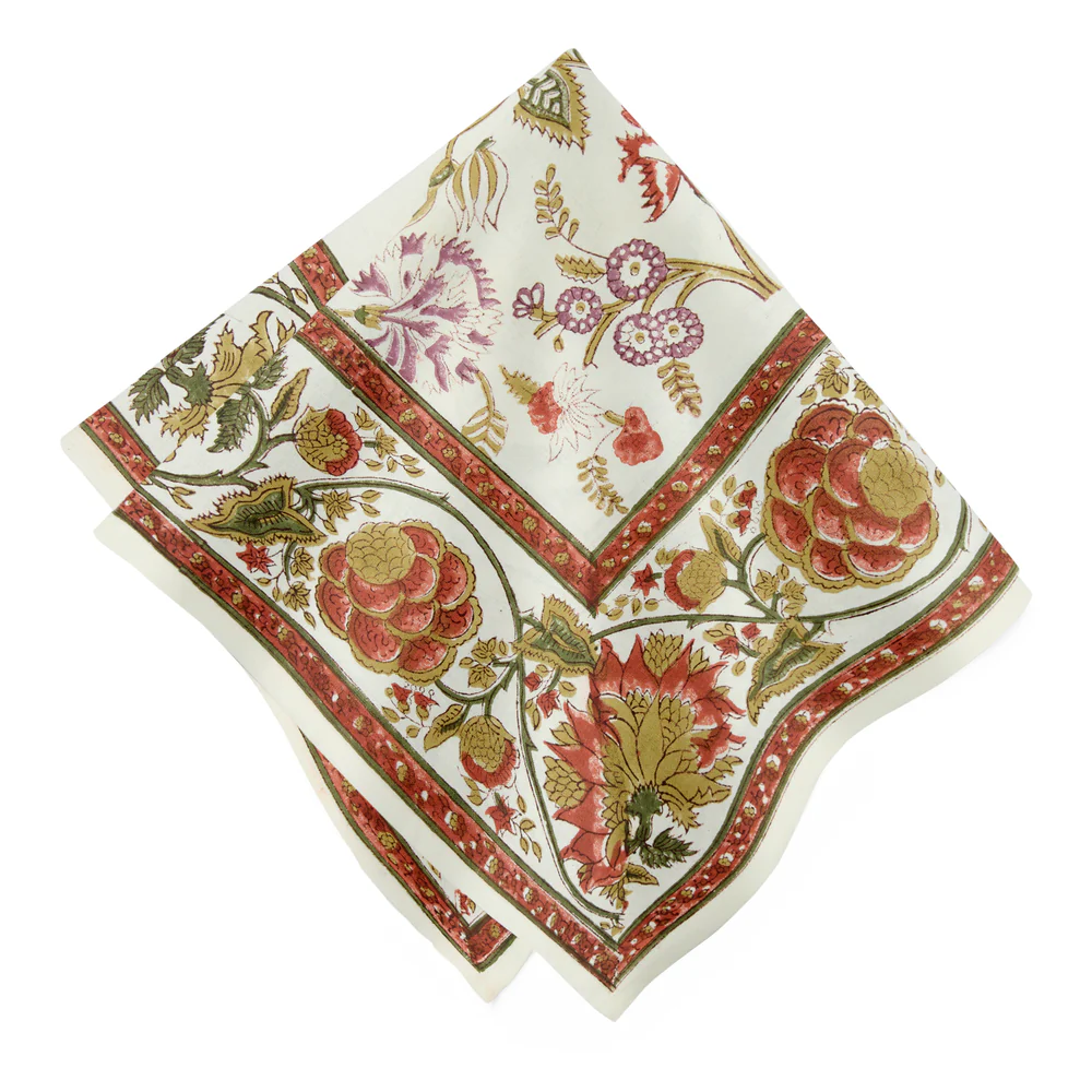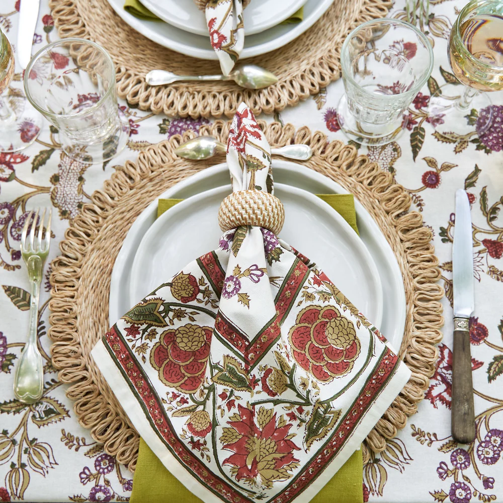 Each napkin is block-printed by skilled artisans, making every piece unique and a true home decor and gift for friends, family, or yourself. Their timeless design enhances table settings, complementing French linens, dinnerware, or your curated home collection.