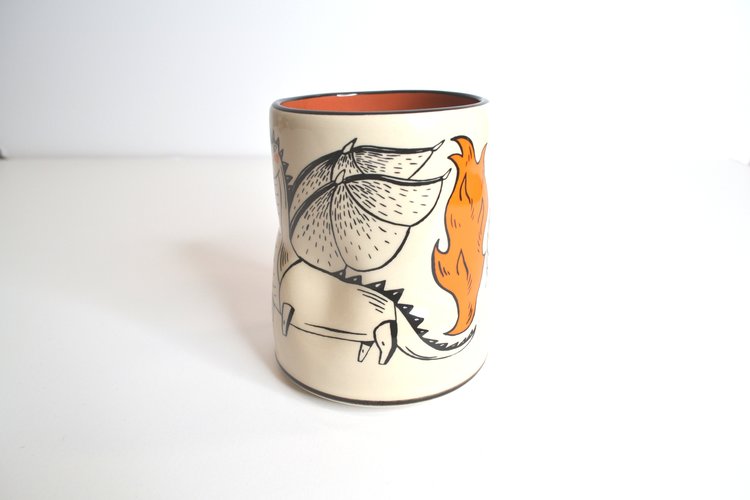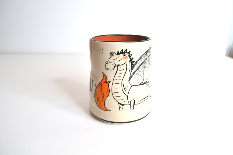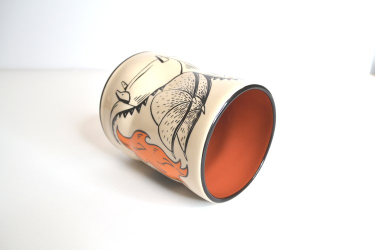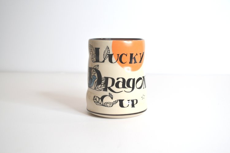 Like prints of a painting, the cups that make up the Lucky Cup Line are faithful reproductions of the artist's originals. Designed in Washington State, made in Thailand. The wares are food, microwave, and dishwasher safe, as well as family and cafe proven strong.