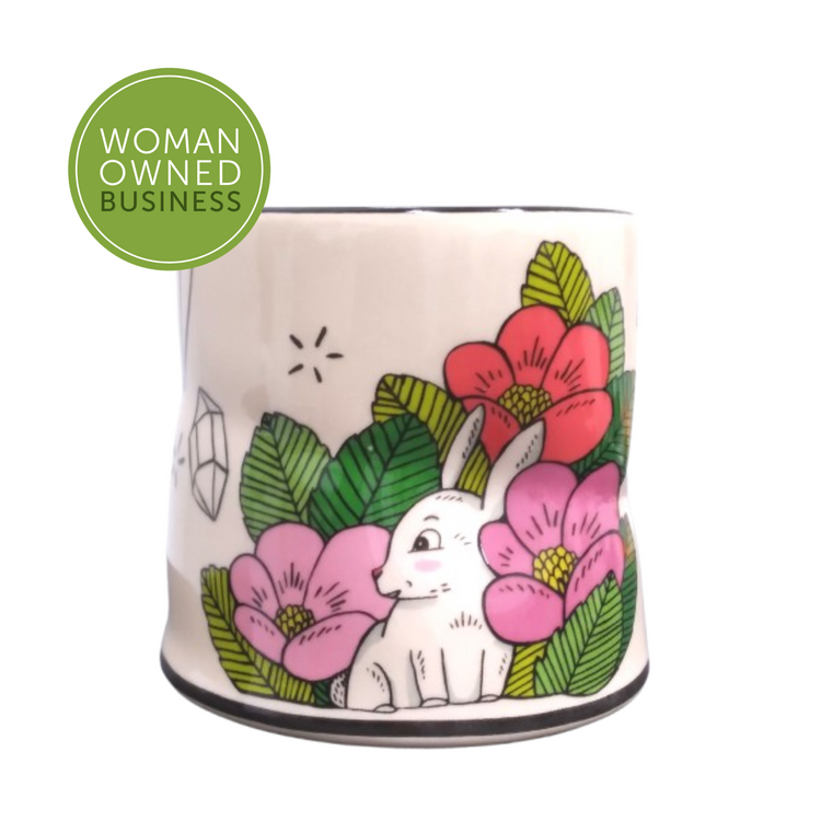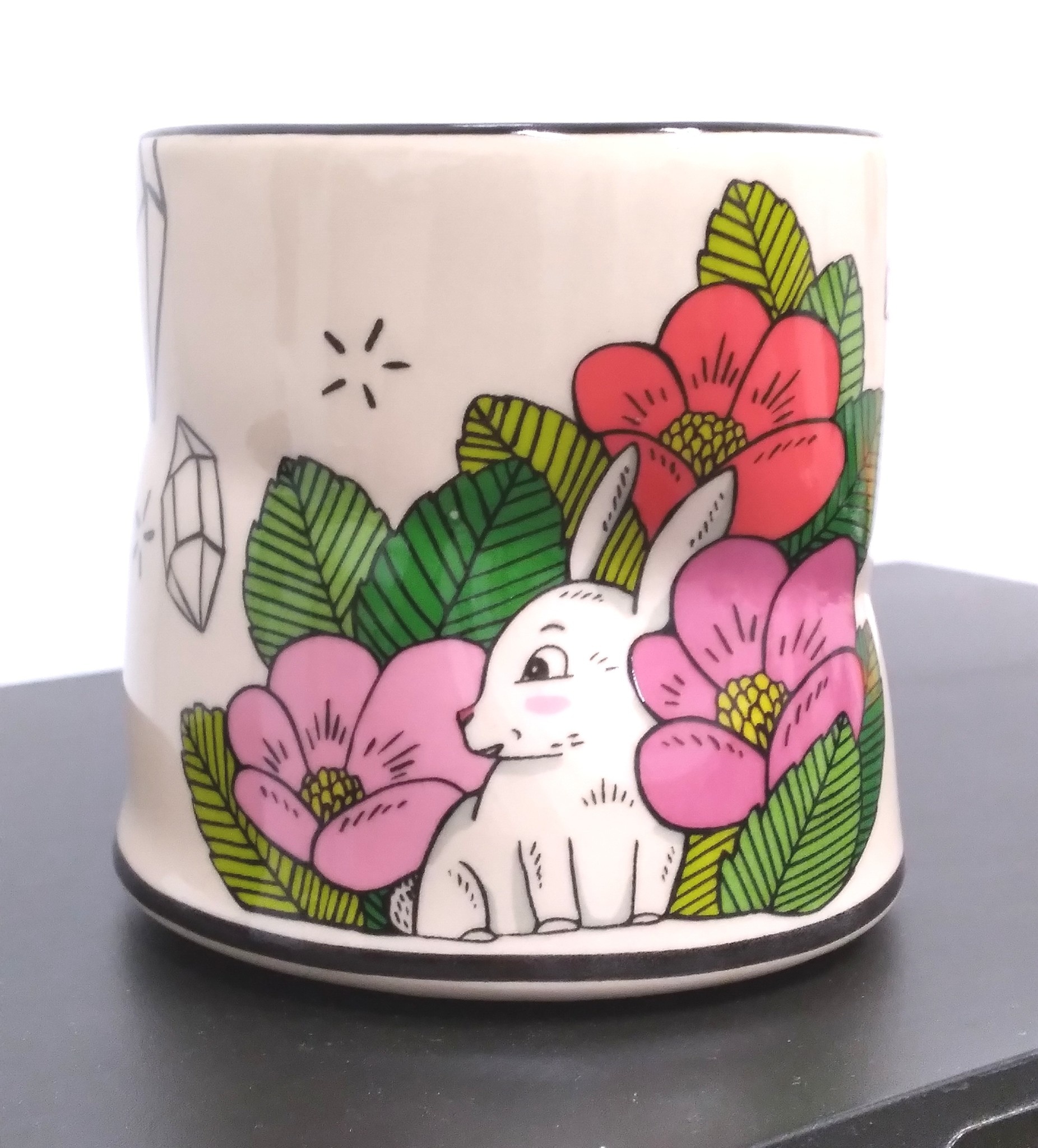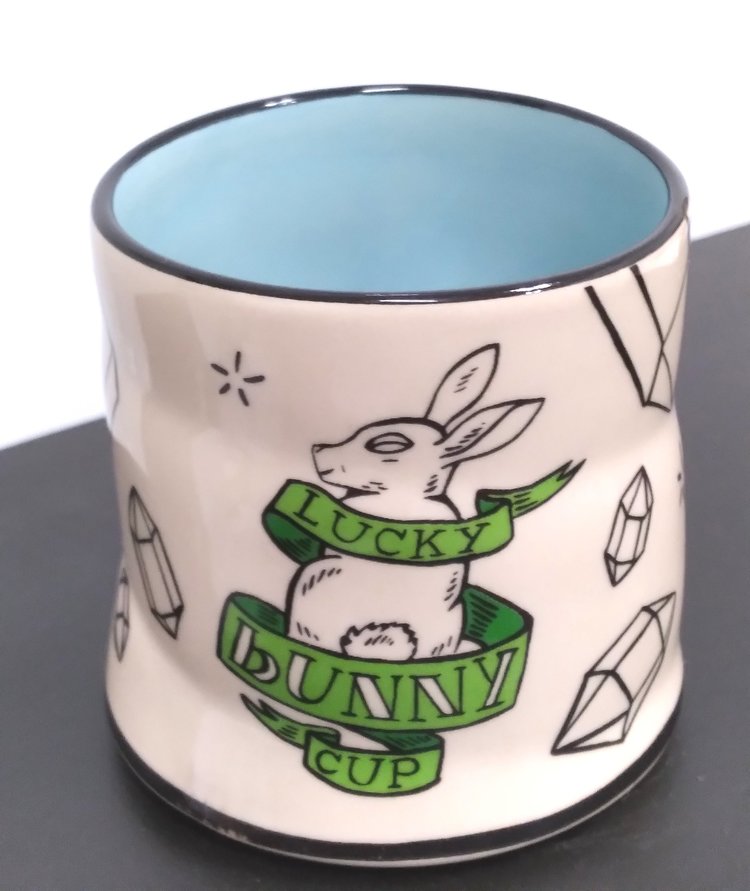 Like prints of a painting, the cups that make up the Lucky Cup Line are faithful reproductions of the artist's originals. Designed in Washington State, made in Thailand. The wares are food, microwave, and dishwasher safe, as well as family and cafe proven strong.