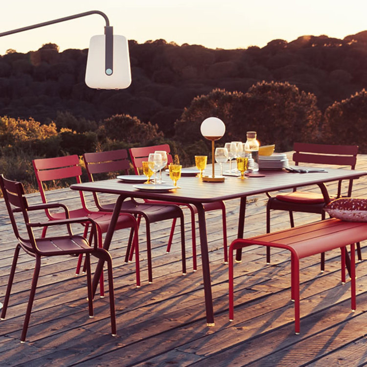 In 2004, Fermob asked Frederic Sofia to reinterpret the legendary chairs and armchairs of the Jardin du Luxembourg, created in 1923 in the Paris parks department workshops, and which Fermob still manufactures today for the city's public gardens. The result was a chair and armchair with distinctive lines and forms, combining the lightness and resistance of aluminum, the comfort of curved seat slats and the practicality of a stackable frame. *This item isn't covered by our shipping special, it is available for free pick-up in our West Seattle store. Please contact us directly if you wish to discuss possible shipping options or local delivery.