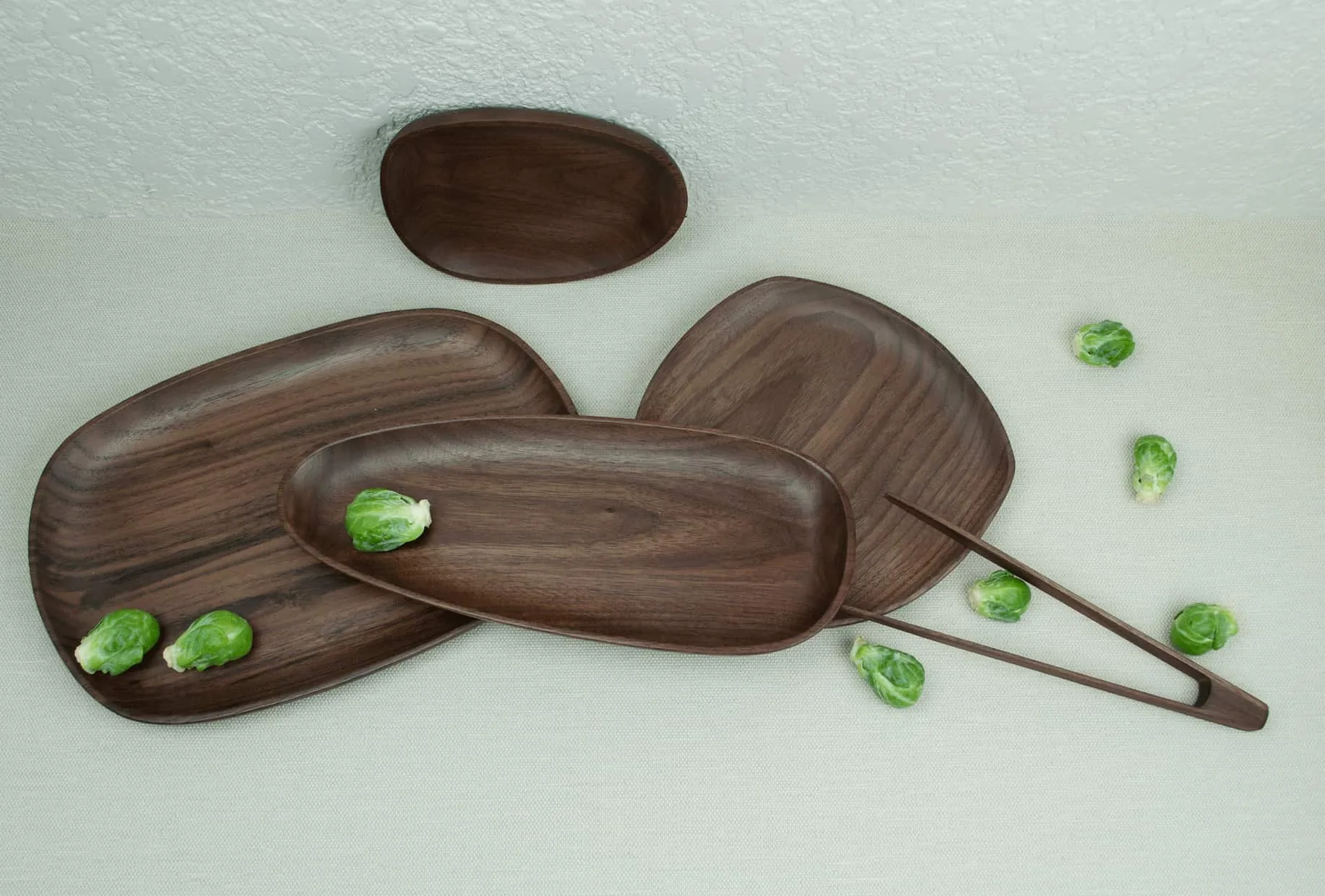Crafted from rich American walnut, its softly rounded pebble shape brings warmth, beauty, and effortless style to any setting.