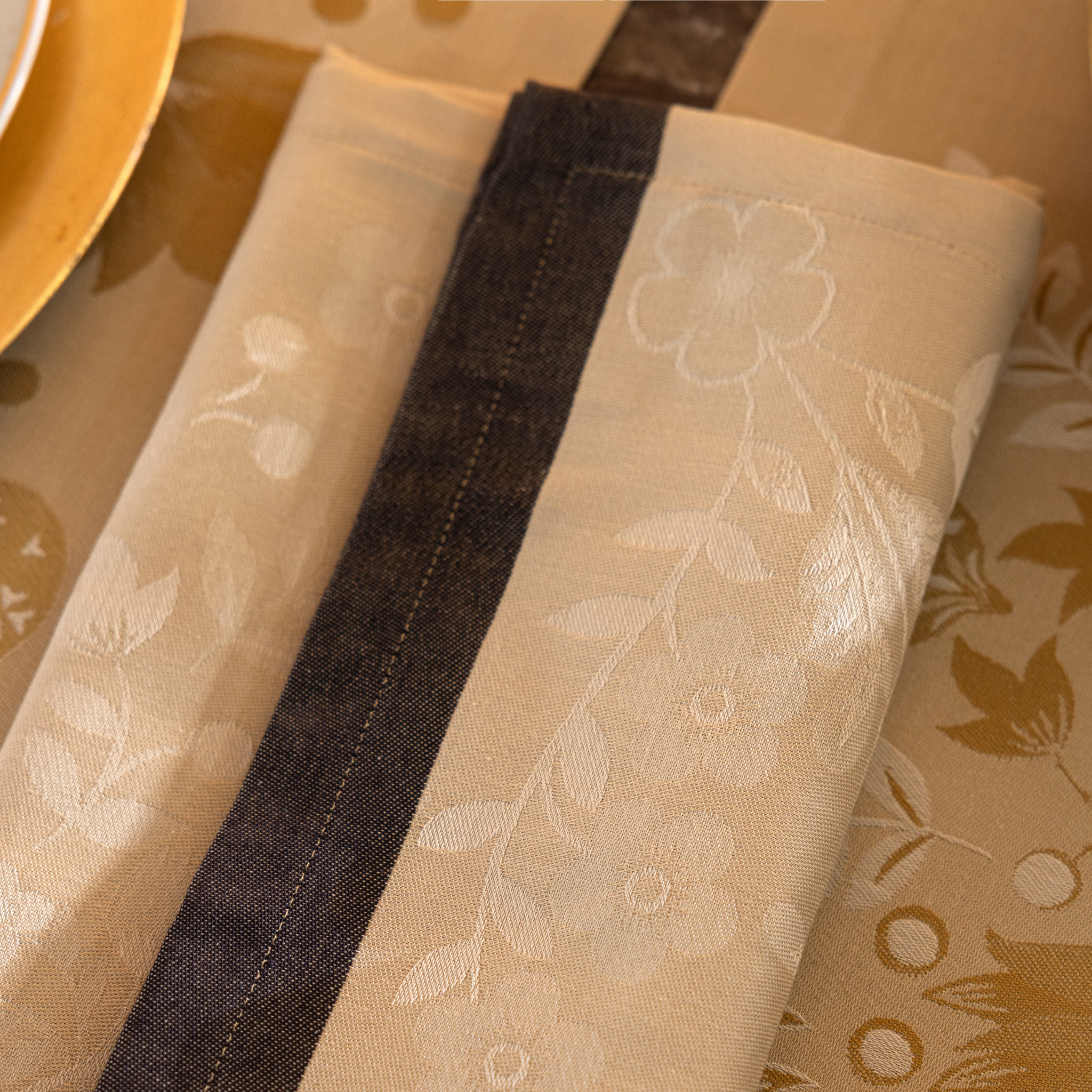 100% combed cotton. Each piece from our French table linens range is made from long fibers that deliver a soft, smooth, and durable finish. The precision of the Jacquard weaving brings life and texture to every design, reflecting the timeless craftsmanship of Le Jacquard Français.