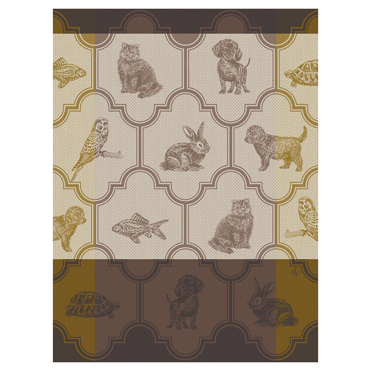 Dogs, cats, rabbits, fish turtles and parrots punctuate our Nos Acolytes tea towels like a collection of memories. Made from 100% damask cotton in our workshops in Gérardmer, France, this charming collection comes in 3 seasonal colors!