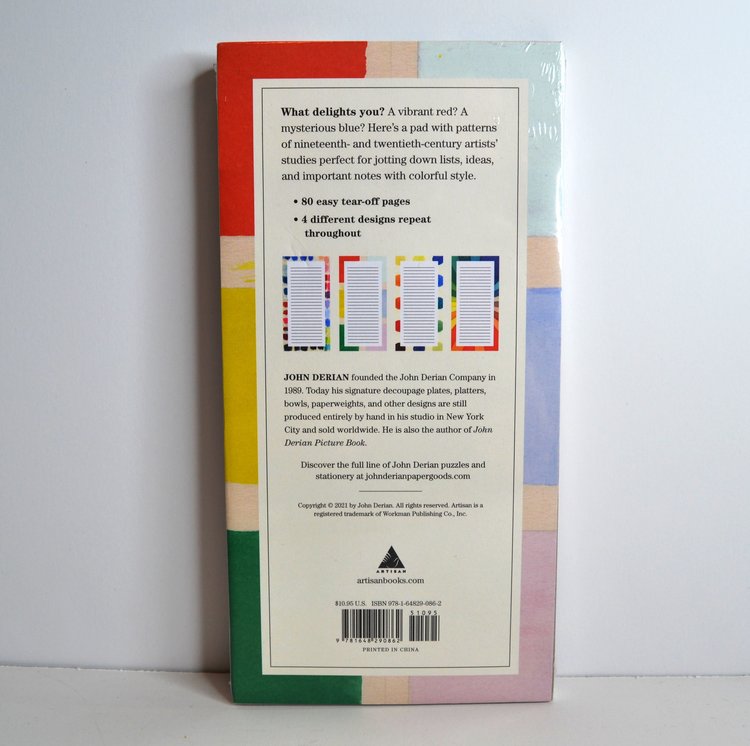 What delights you? A vibrant red? A mysterious blue? Here’s a pad with patterns of nineteenth- and twentieth-century artists’ studies perfect for jotting down lists, ideas, and important notes with colorful style.