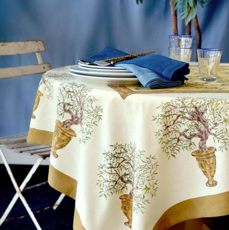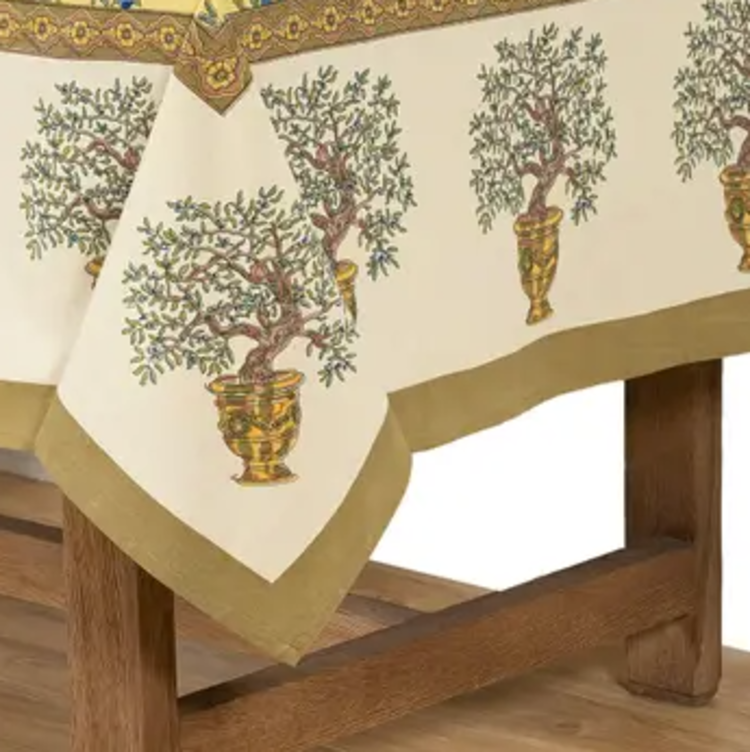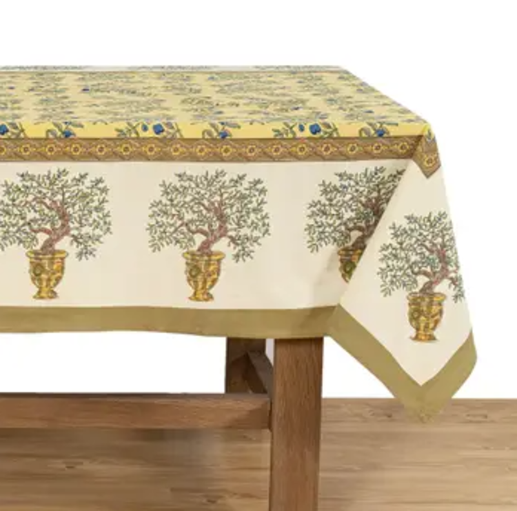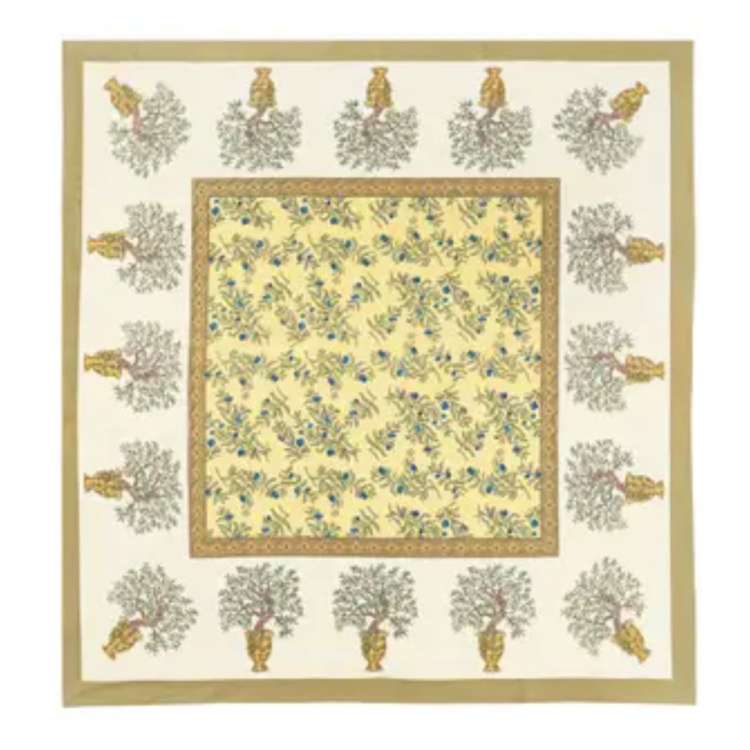 Olive Tree Tablecloth - Khaki Blue 59" x 59"