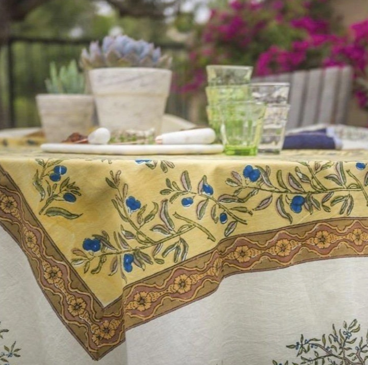 Review Olive Tree Tablecloth - Khaki Blue 59" x 59"