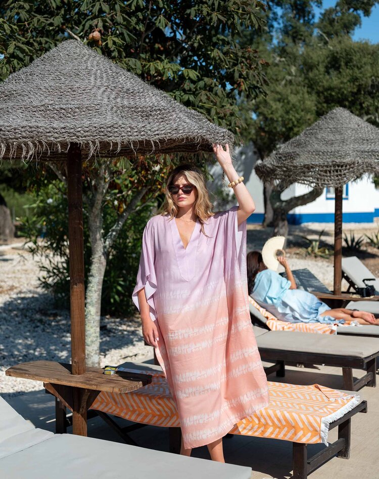 The Palm Springs Kaftan is designed for movement and comfort, with a flowing silhouette that flatters without restriction. From beach mornings to poolside afternoons and sunset dinners, it’s the kind of piece she’ll pack, wear, and love on repeat.