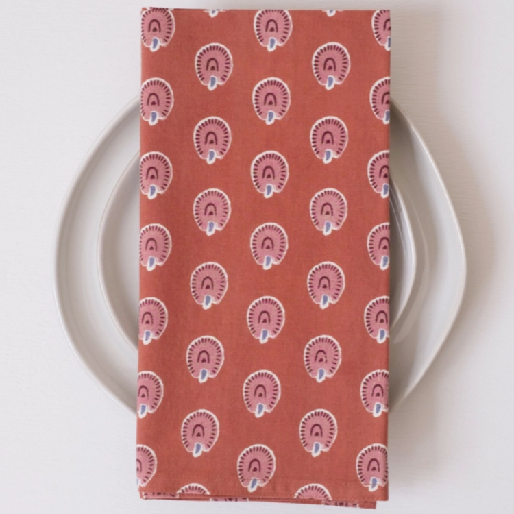 Review Peacock Dark Terracotta Block Printed Napkins - Set of 4