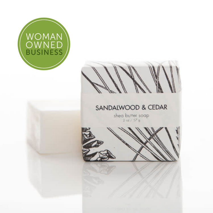 2 oz. Sandalwood & Cedar shea butter soap packaged in our signature botanical and vintage illustrations.