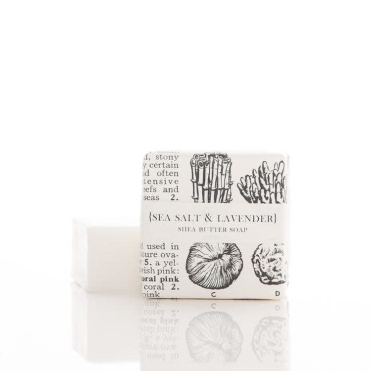 2 oz. Sea Salt & Lavender shea butter soap packaged in our signature botanical and vintage illustrations. Superfatted to be extra moisturizing and skin softening. These petite bars are long lasting and luxurious.
